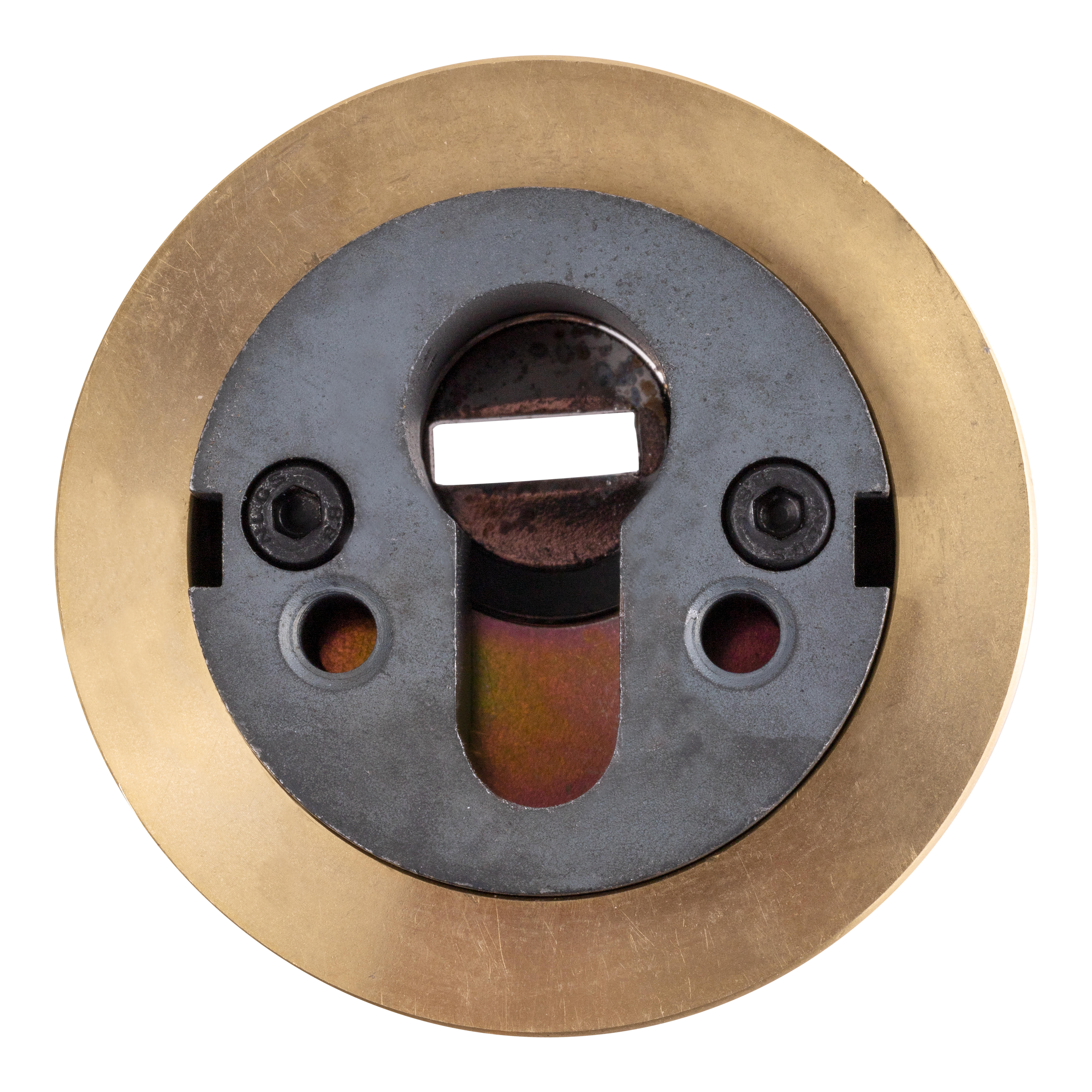 Escudo de seguridad redondo para cerradura acabado en latón Amig 01.