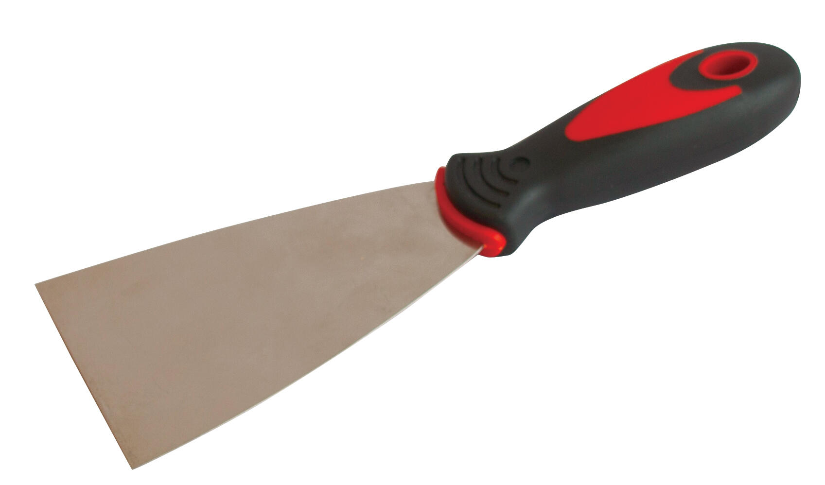 Espátula de pintor mango bimaterial. Hoja de acero inoxidable 60 mm. Espesor 0,90 mm Vaciada, flexible.