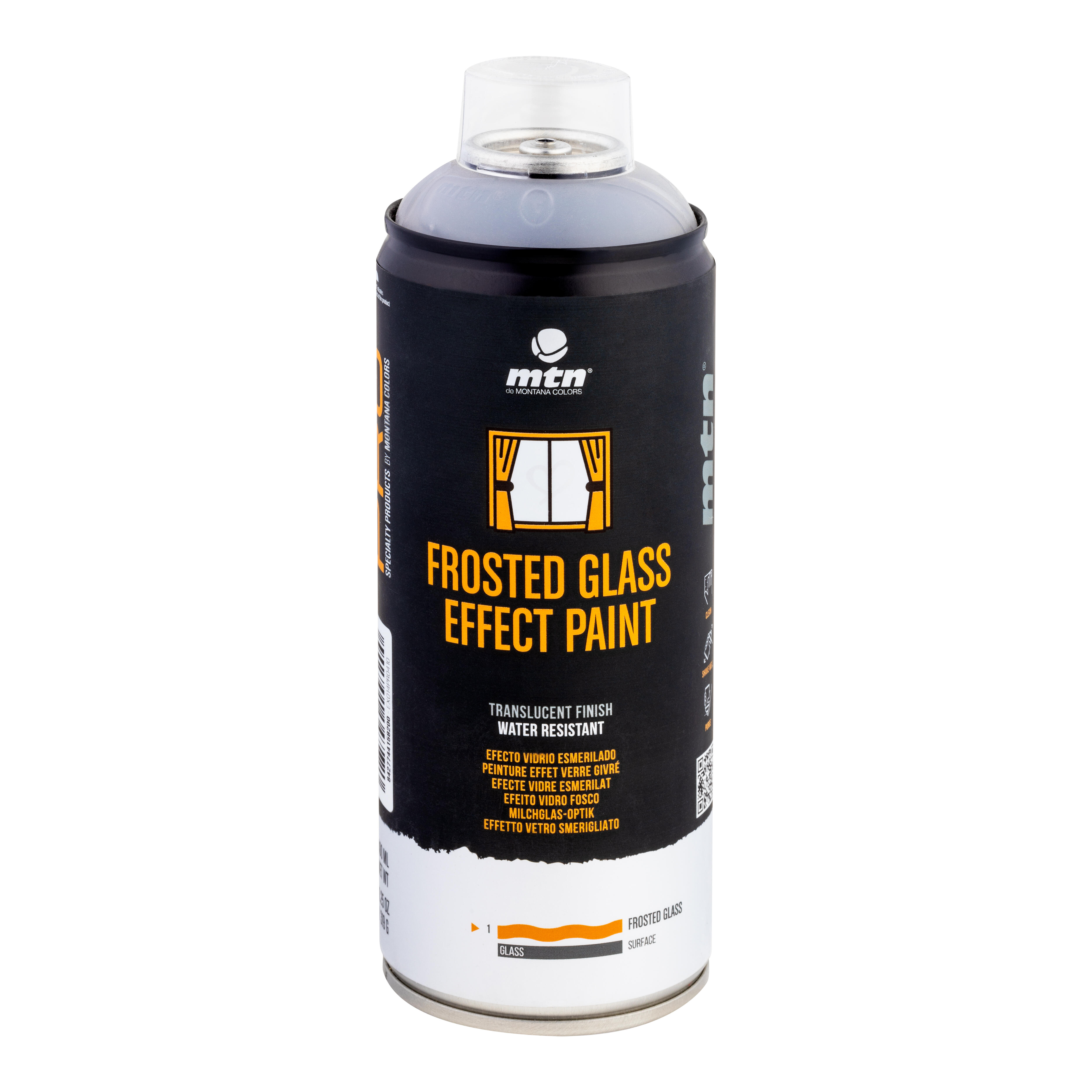 Barniz en spray , acabado mate, translúcido, de secado rápido, para crear el efecto de vidrio esmerilado/glaseado en todo tipo de ventanas, cristal, mamparas y/o en algunos tipos de plásticos transparentes