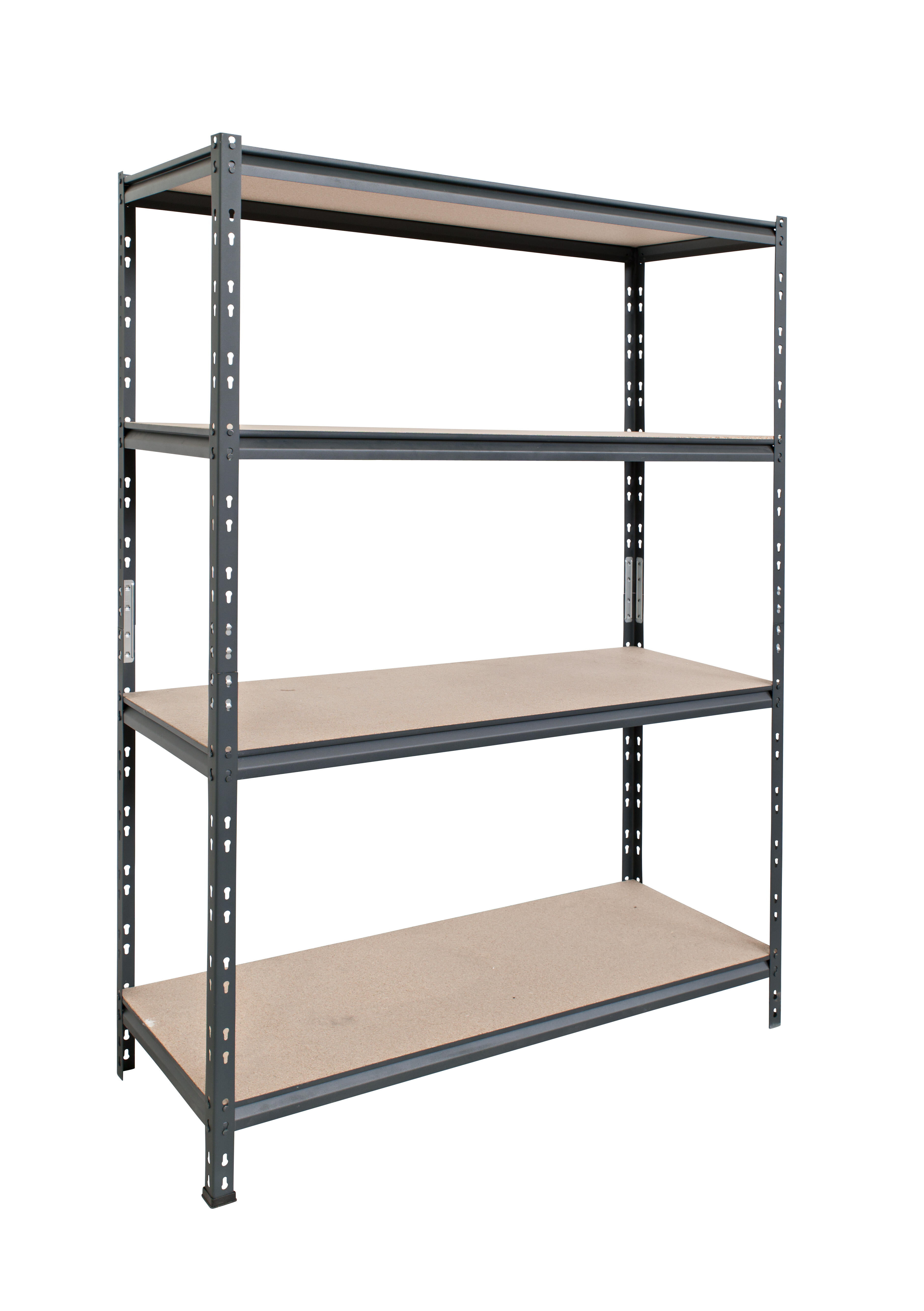 Estantería metálica AR Shelving de 180 x 100 x 50cm y 4 baldas regulables en altura cada 4 cm. Montaje sin tornillos, largueros y travesaños en forma de Z para mejor asentamiento del tablero, nuevo sistema de anclaje de ribetes tipo bulón que facilitan el montaje y aportan mayor resistencia. Carga máxima de 1.200 kg, 300 kg por balda (uniformemente repartidos). Tableros de aglomerado de 8 mm de grosor. Perfecta para almacenar objetos en garajes, trasteros, almacenes, talleres, industrias, etc. Se puede montar como banco de trabajo. Fabricada en acero.