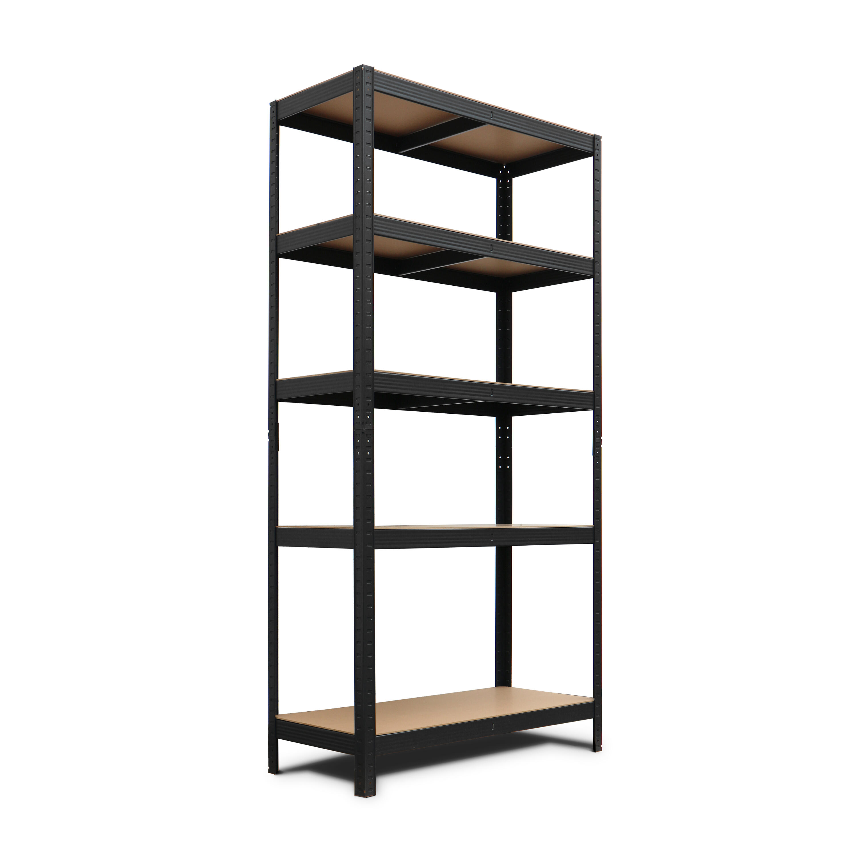Estantería metálica AR Shelving de 180 x 90 x 40 cm y 5 baldas regulables en altura cada 4 cm. Montaje sin tornillos. Carga máxima de 875 kg, 175 kg por balda (uniformemente repartidos). Tableros en HDF de 5 mm de grosor. Perfecta para almacenar objetos en garajes, trasteros, almacenes, talleres, industrias, etc. Se puede montar como banco de trabajo. Fabricada en acero.