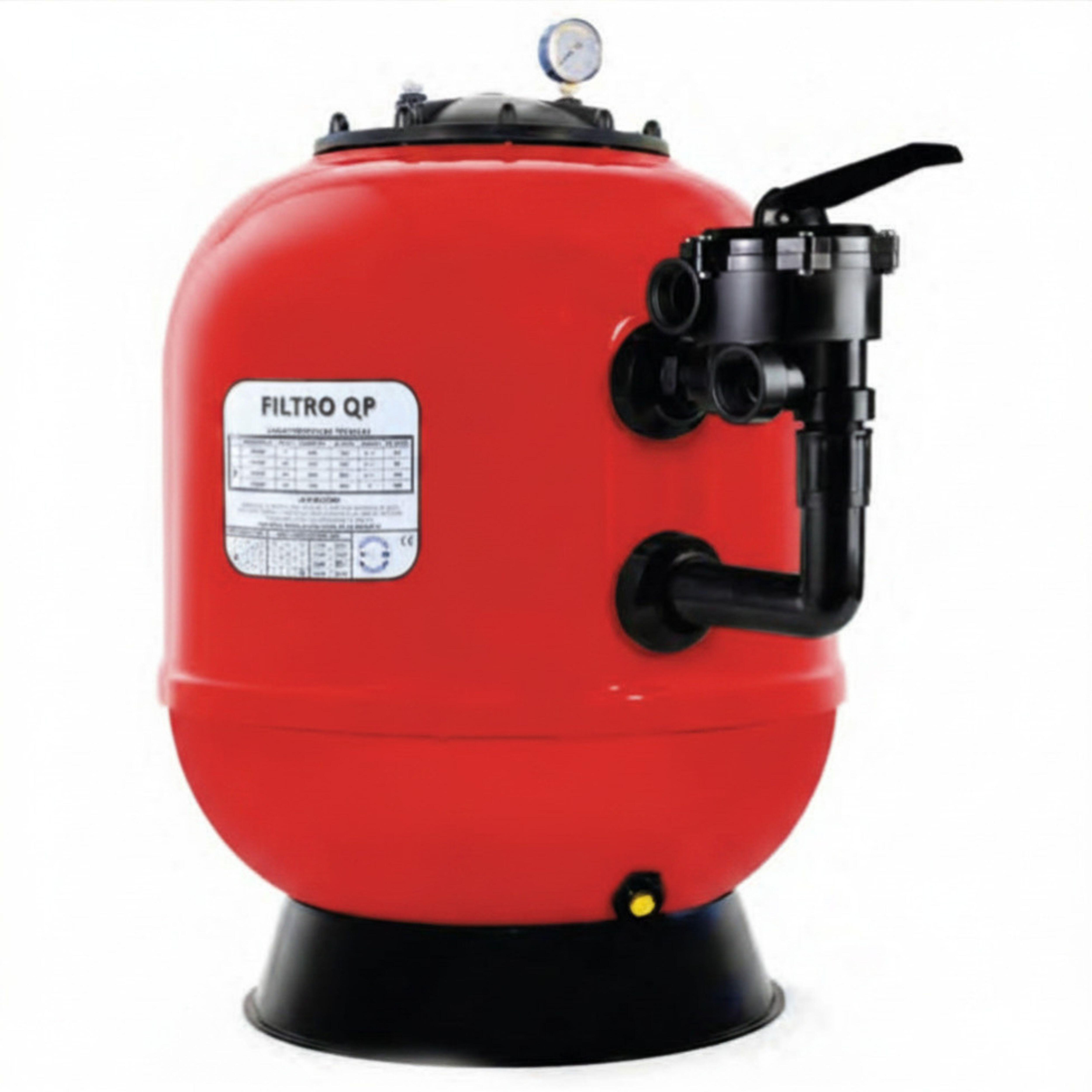 Filtro laminado con válvula lateral de 500mm. En resina poliéster y fibra de vidrio, montado con colectores de 1″ de diámetro y difusor de plástico inalterable PVC y PP. Diámetro: 500 mm. 9m3/h.