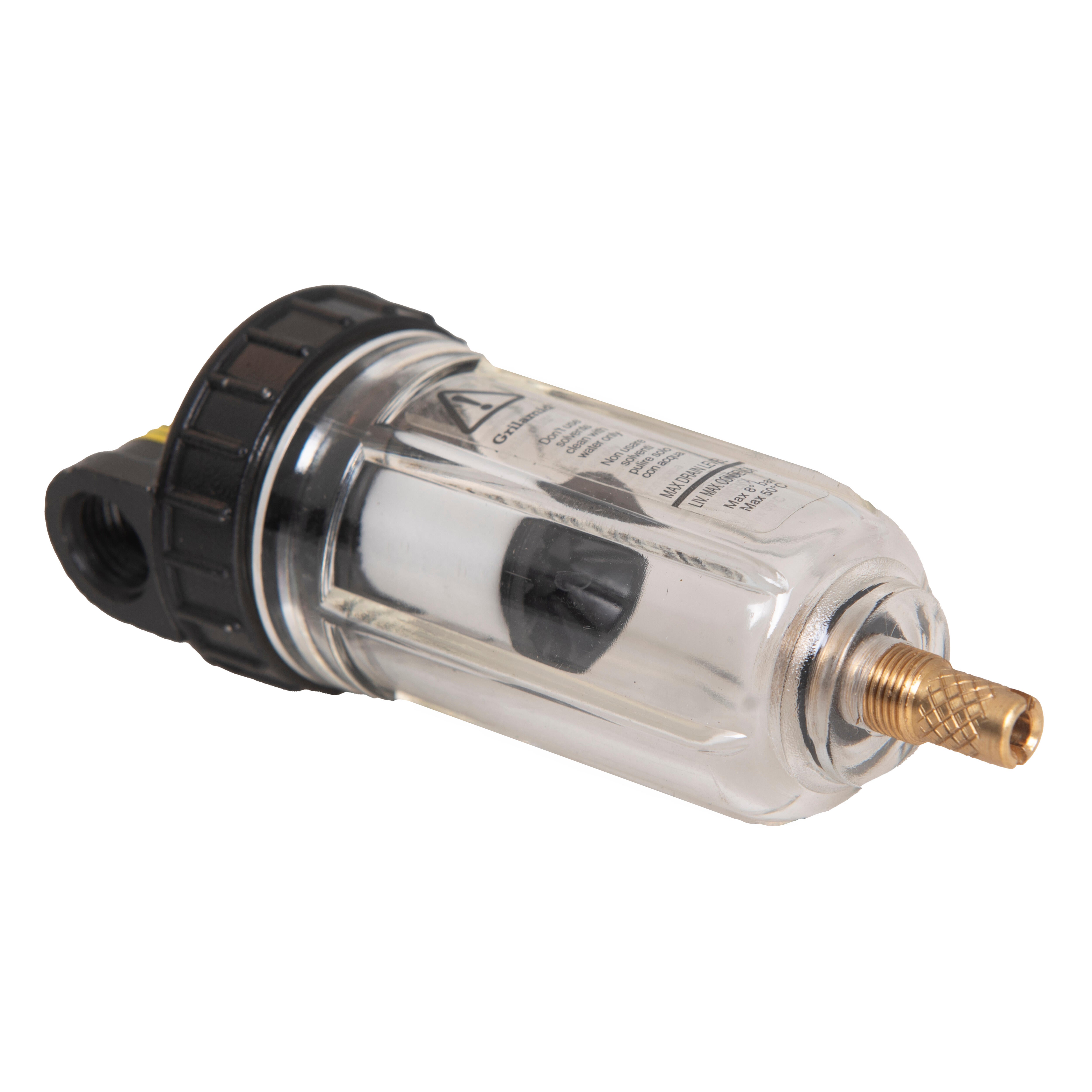 Filtro purificador, grado de filtración 20 micron. Elimina la humedad producida por la condensaciñon de aire en el calderín. Conexión hembra 1/4