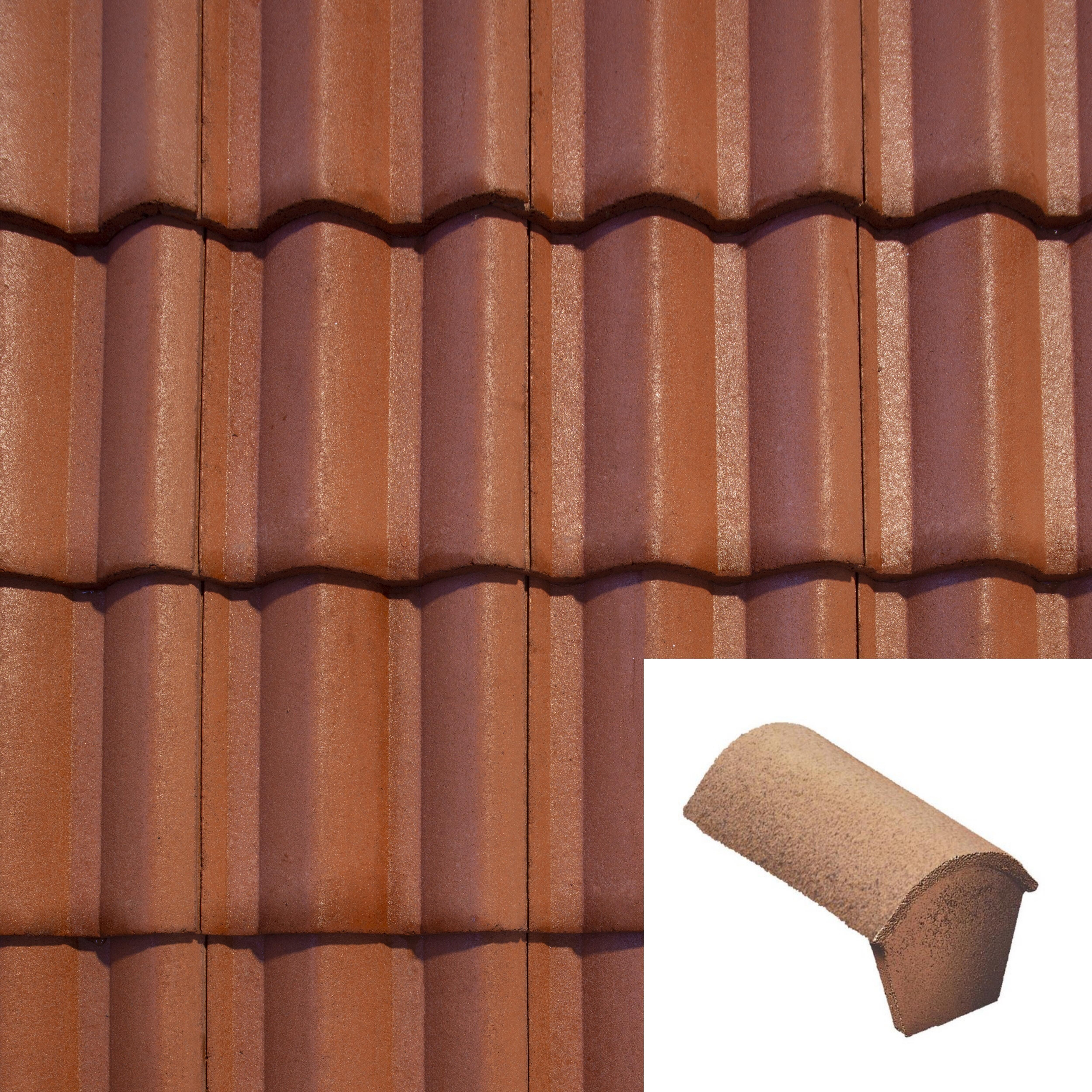 Pieza para el remate del final de la cumbrera. Se coloca la última, después de haber encajado todas las piezas de cumbrera necesarias hasta completar la línea del tejado. Para teja de hormigón masa latina rojo. Se recomienda su instalación con ganchos de cumbrera. Medidas: 42x22cm.