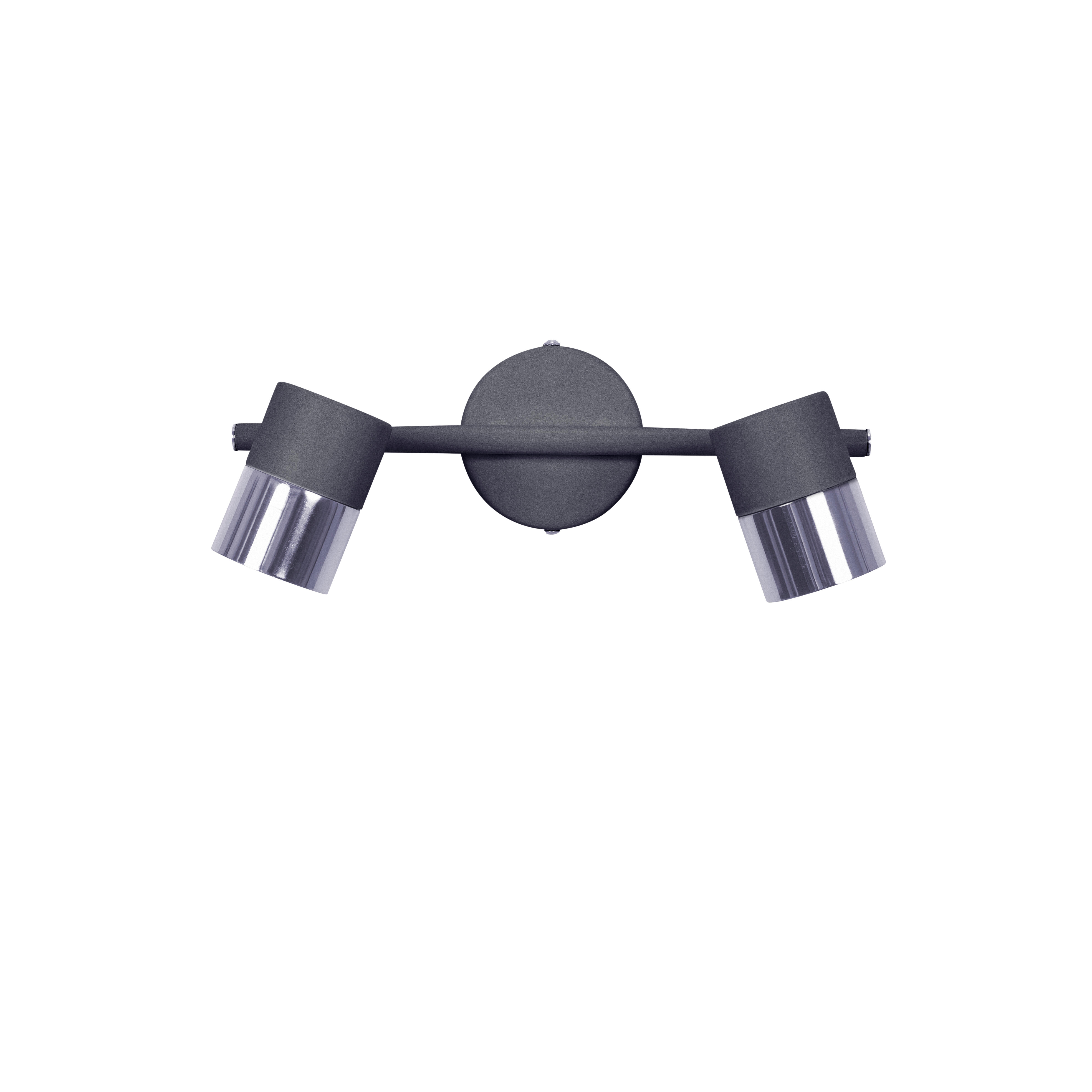 Foco 2 luces Cloc IP20. Posibilidad de instalar tanto en el techo como en pared. Medidas Ø9x8 cm. Acabado en negro fabricado en aluminio. Cabezal de foco ajustable.