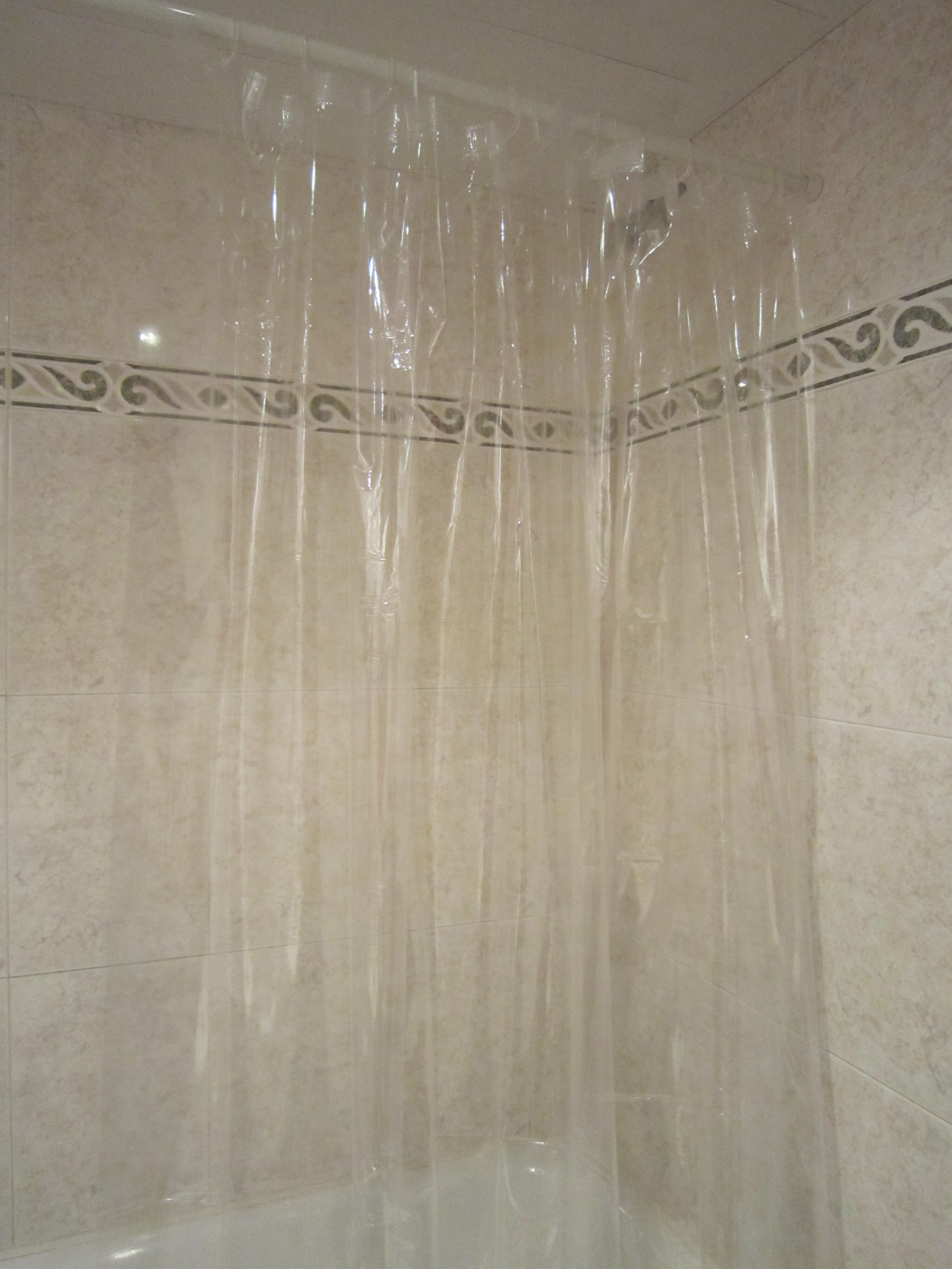 Forro de cortina transparente ideal para que pase más luminosidad a tu baño.