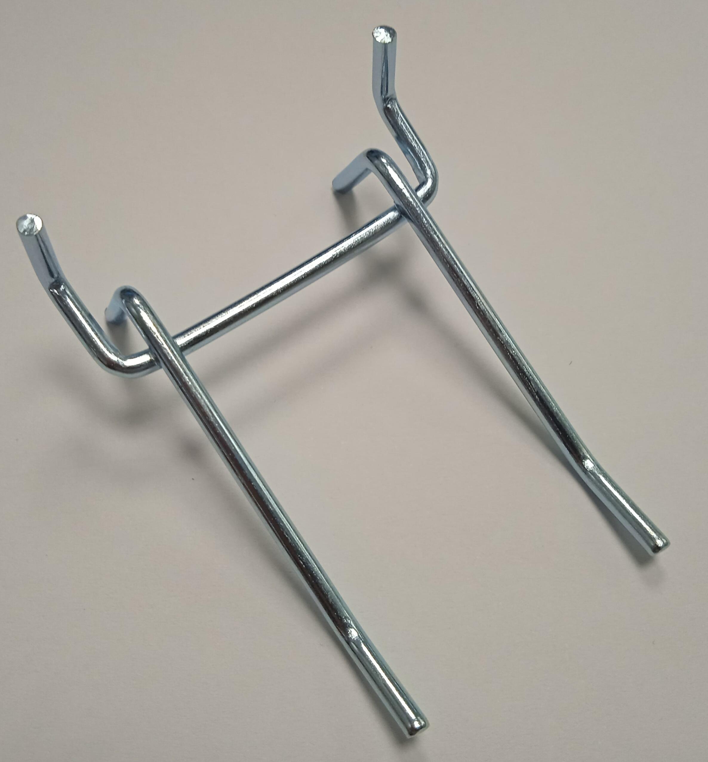 Gancho doble para colgar en pared metálico 50mm. Ideal para organizar herramientas y maximizar el espacio en su hogar o taller.