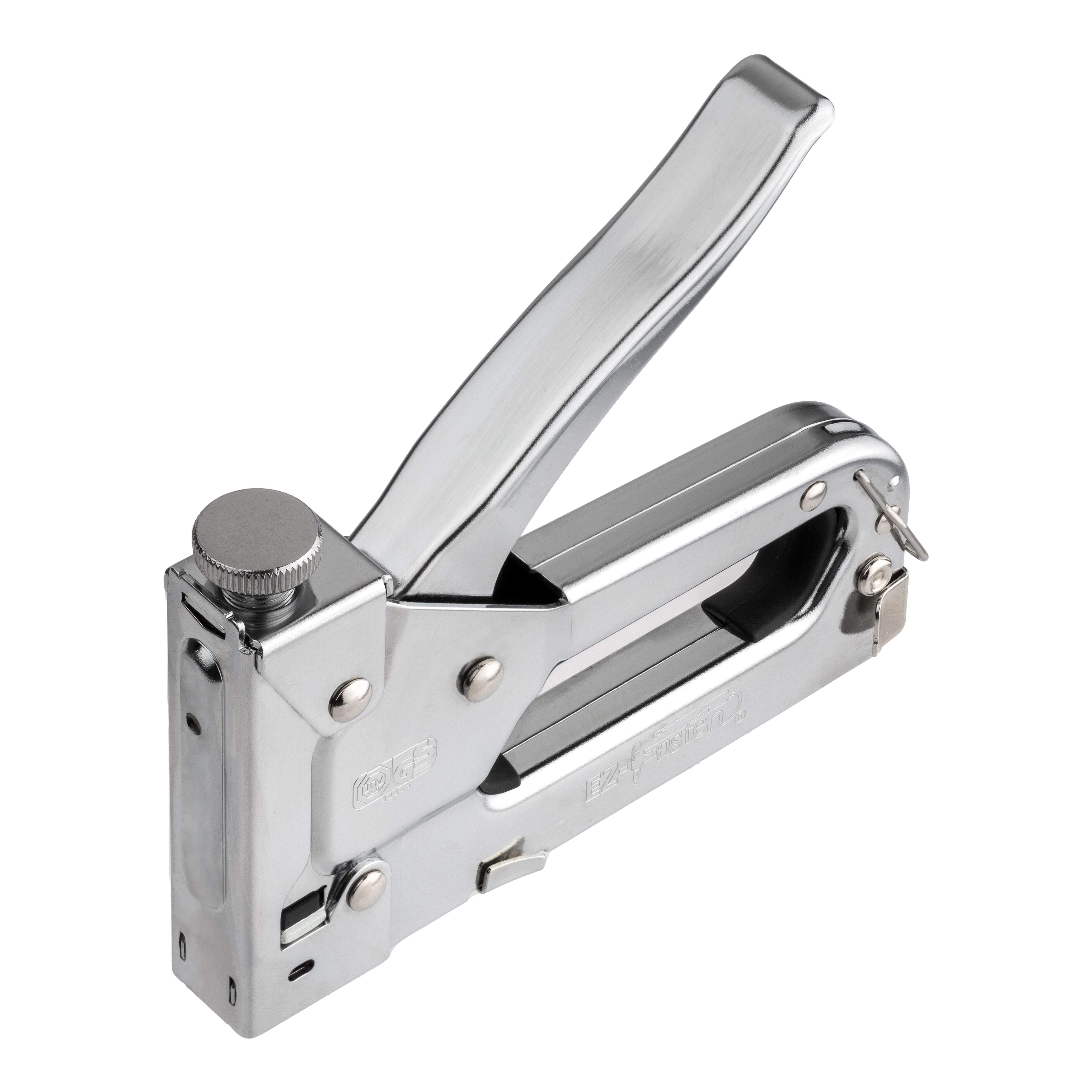 Grapadora manual Mod. 753 construida en acero niquelado con regulación de potencia. Para grapa 530 desde 4 a 14 mm.