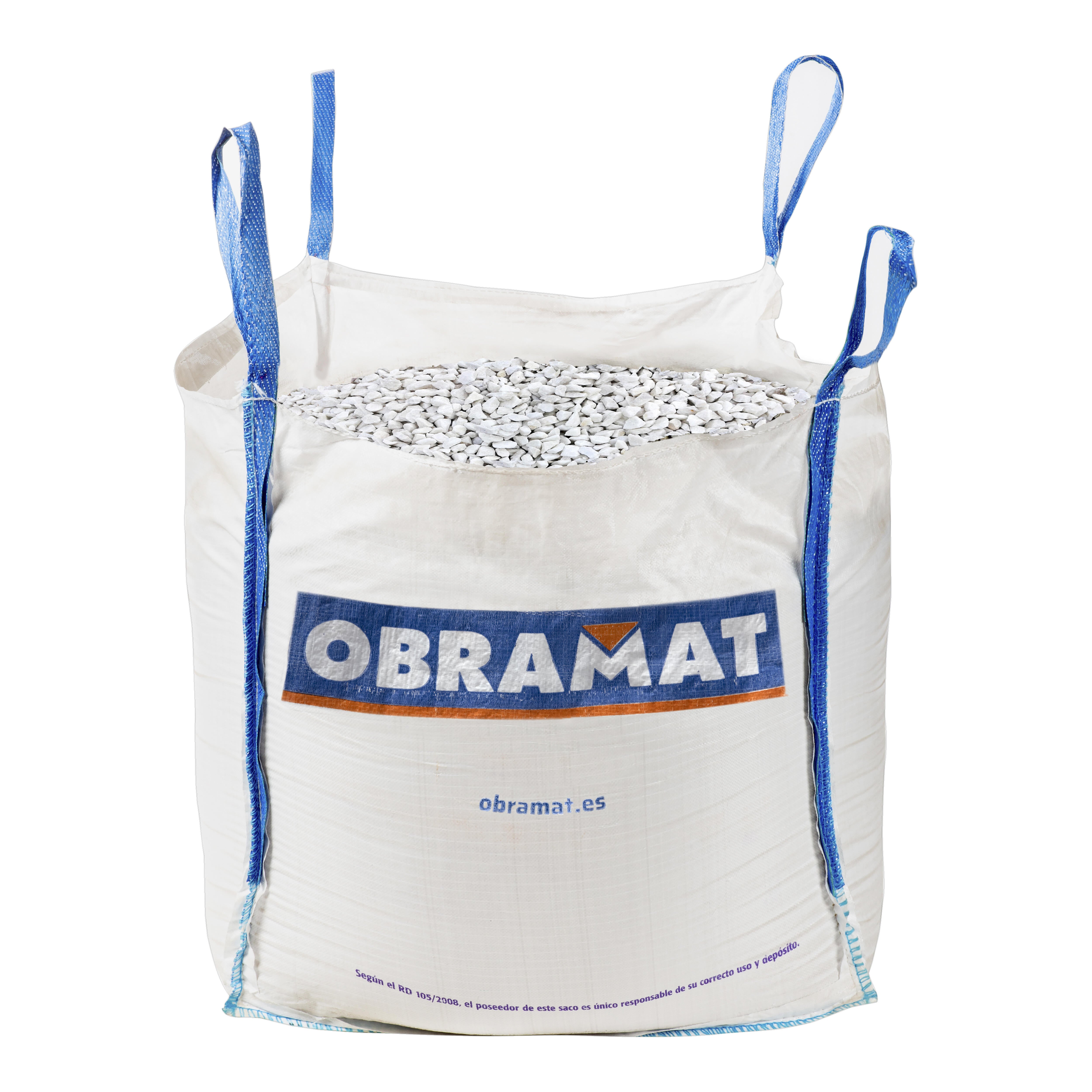 Grava blanca para uso decorativo. Granulometría 12/18 mm. Saca de 1000 Kg.