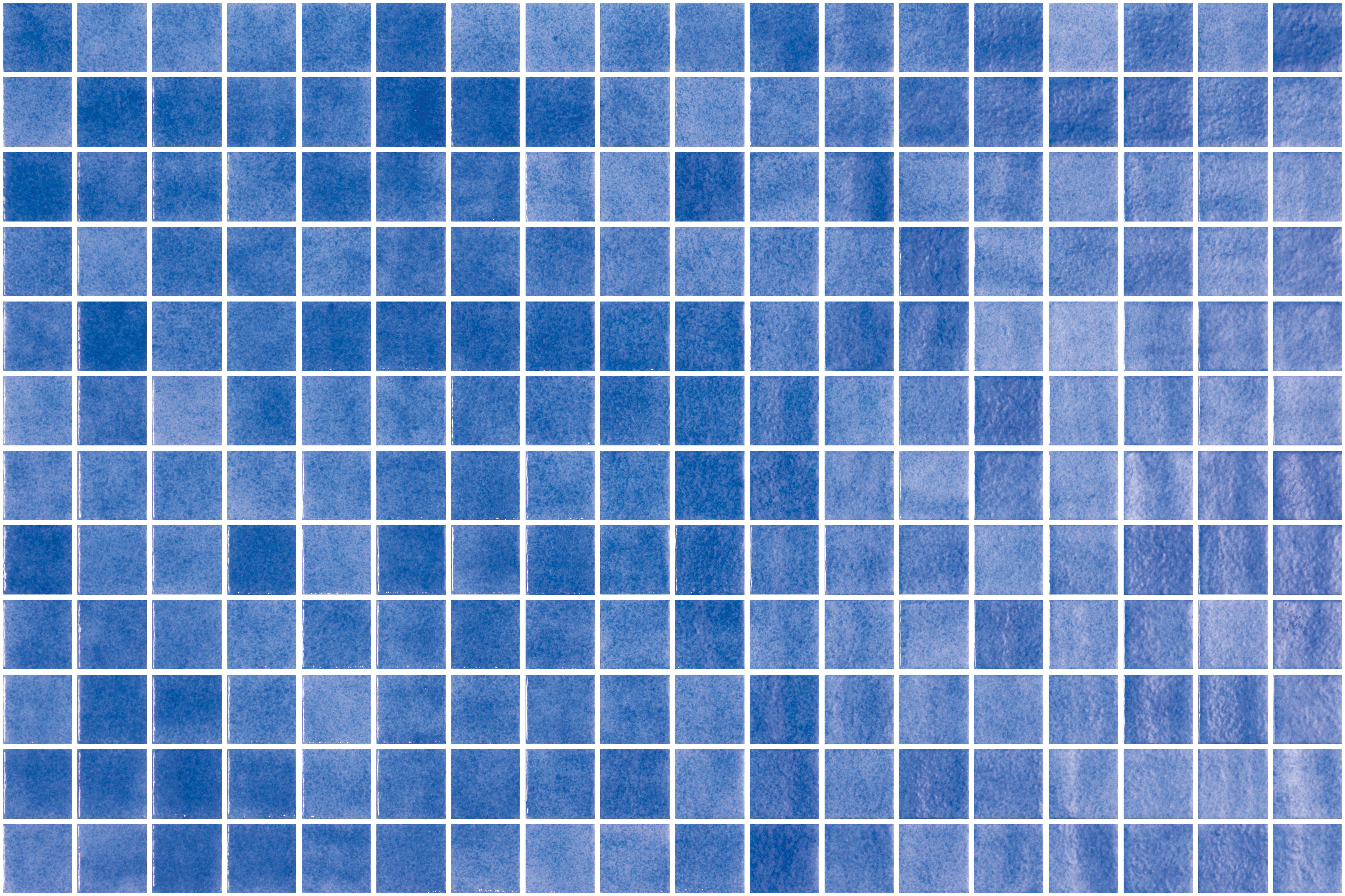 Gresite Salvora, acabado destonificado color azul y acabado brillo. Soporte en punto PVC. Medidas 31x46.7 cm (pieza) y cada caja contiene 2.03m2.