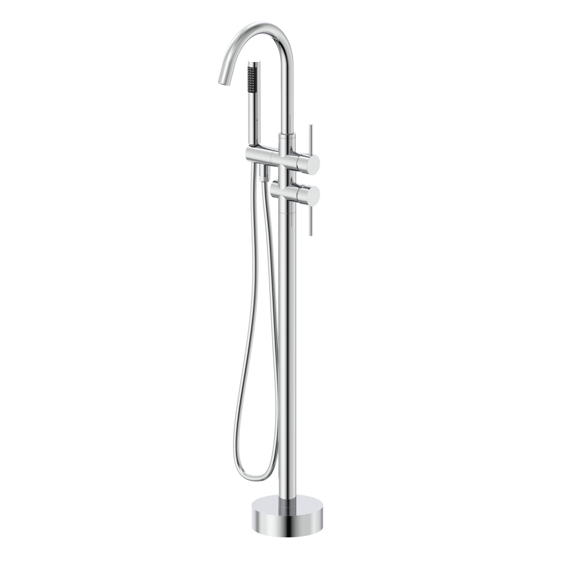 Grifo de bañera monomando a suelo, acabado cromado. con ducha de mano y flexo.