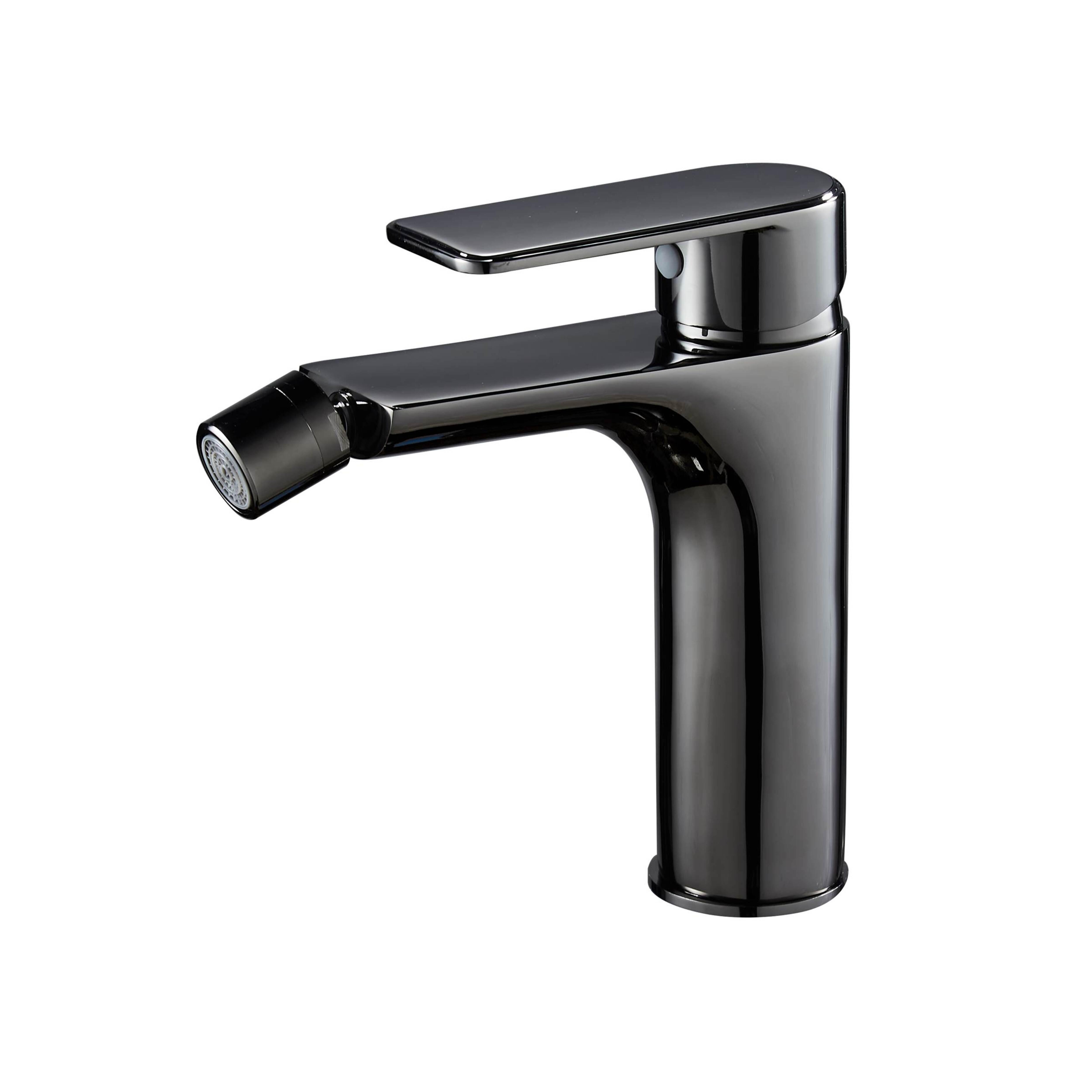Monomando de bidet fabricado en latón, en acabado PVD con cartucho de disco cerámico de 35 mm. Incluye manguitos de alimentación flexibles. Medidas del grifo: Altura: 155 mm Base: Ø 52mm