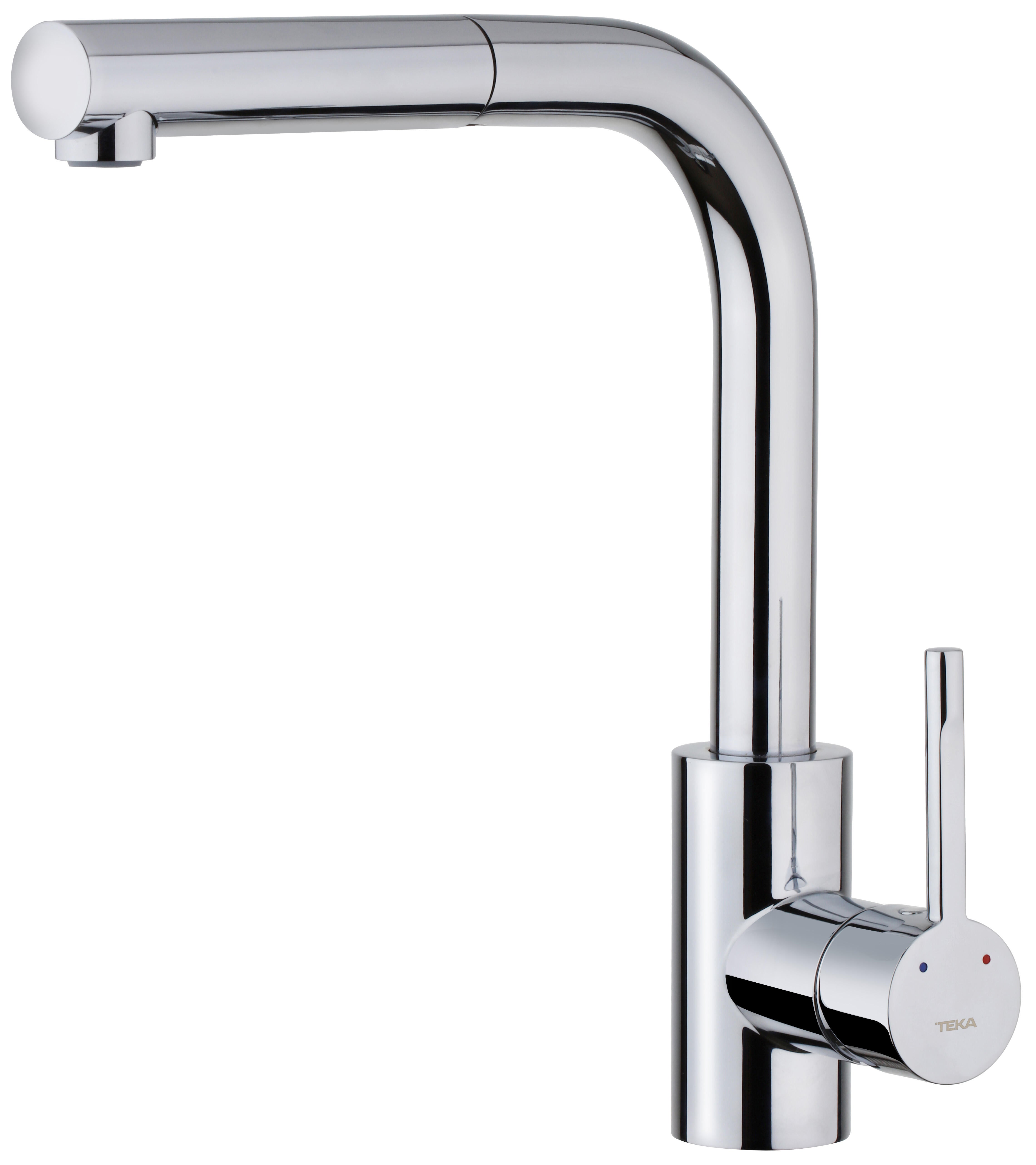 Grifo de cocina monomando de caño alto, con grifo extraíble. Fabricado en latón cromado y mango de metal. Acabado cromado.