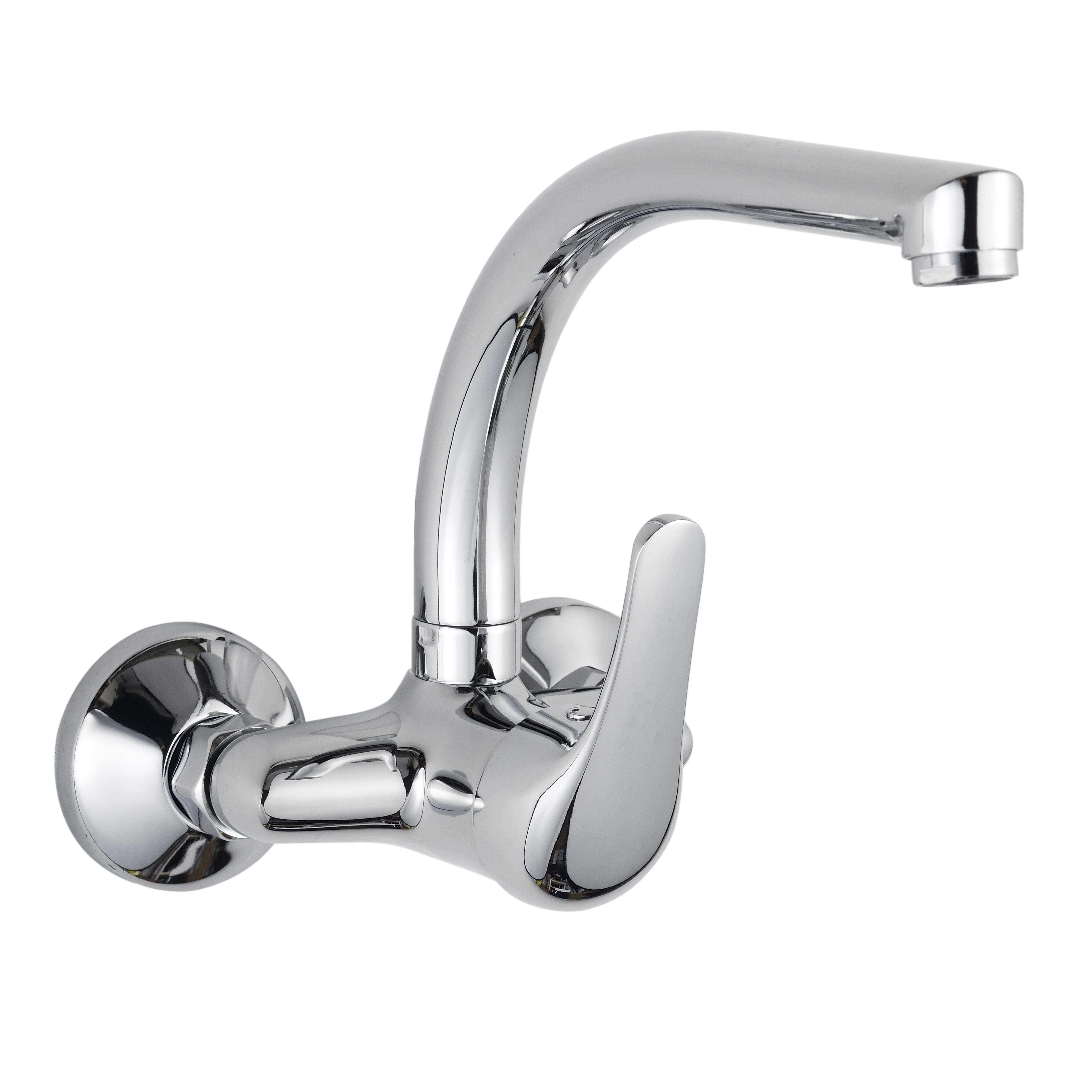 Grifo de cocina mural, de la marca Corberó, modelo Nydra. Fabricado en latón cromado, para instalar en pared.