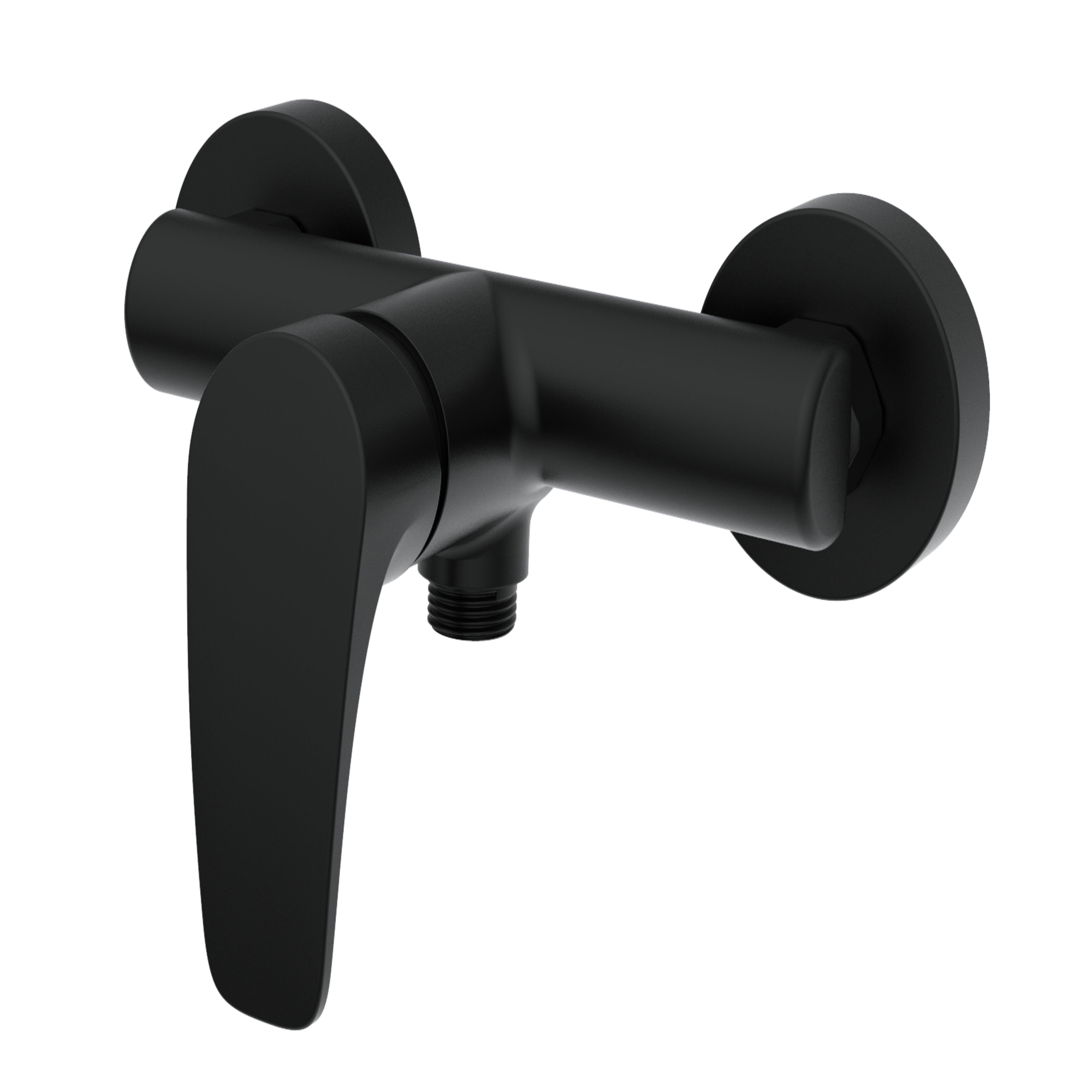 Monomando de ducha fabricado en latón, de color negro, con cartucho cerámico de 35 mm. Incluye embellecedores.