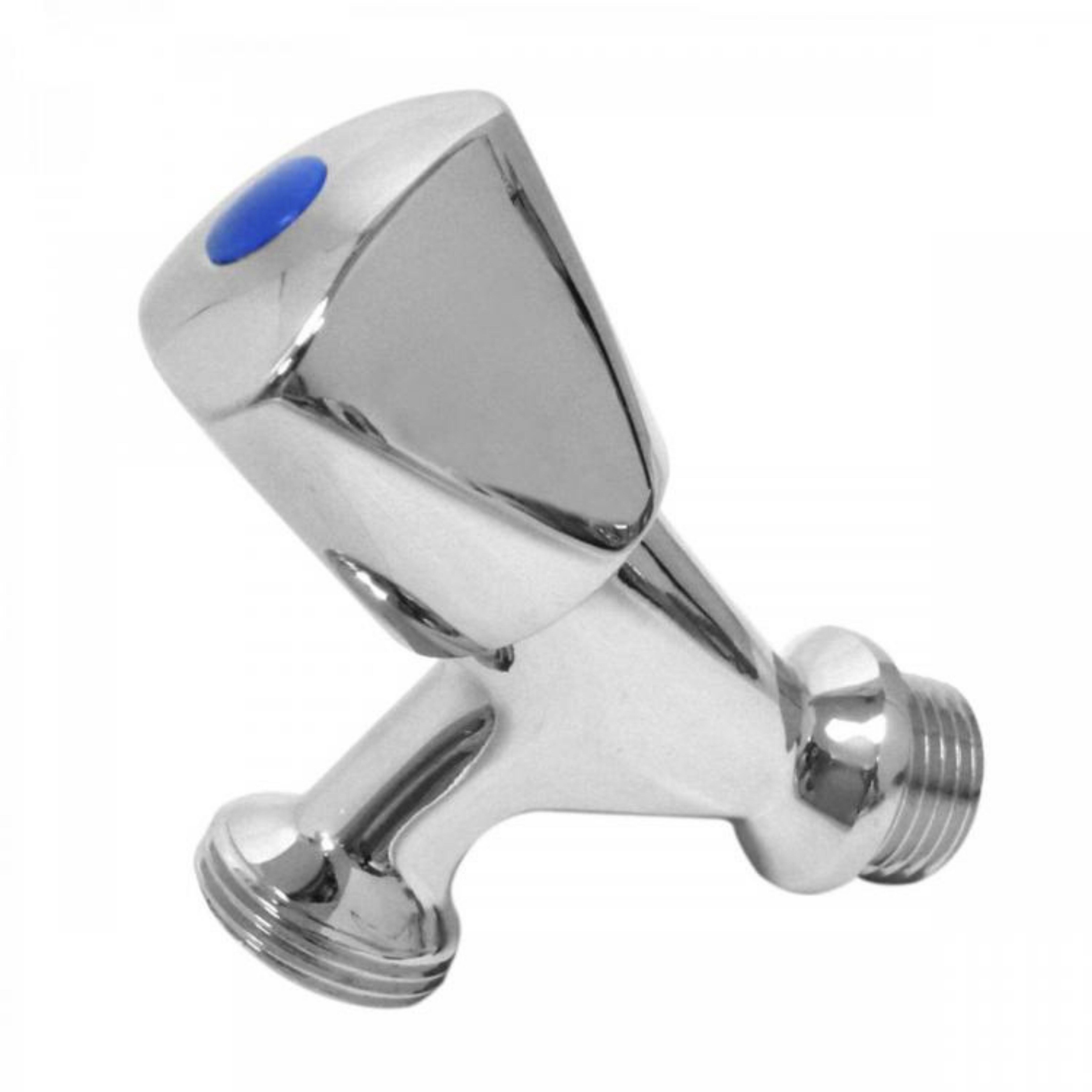 Grifo lavadora que permite cortar de forma individual el suministro de agua a lavabos, fregaderos y cisternas mientras están siendo reparadas o sustituidas. Tiene una conexión macho/hembra con un roscado de entrada de 1/2" y de salida de 3/4". Está fabricada en latón cromado que resiste temperaturas de 95°C y una presión de 16 bares. Se cierra con solo un cuarto de vuelta