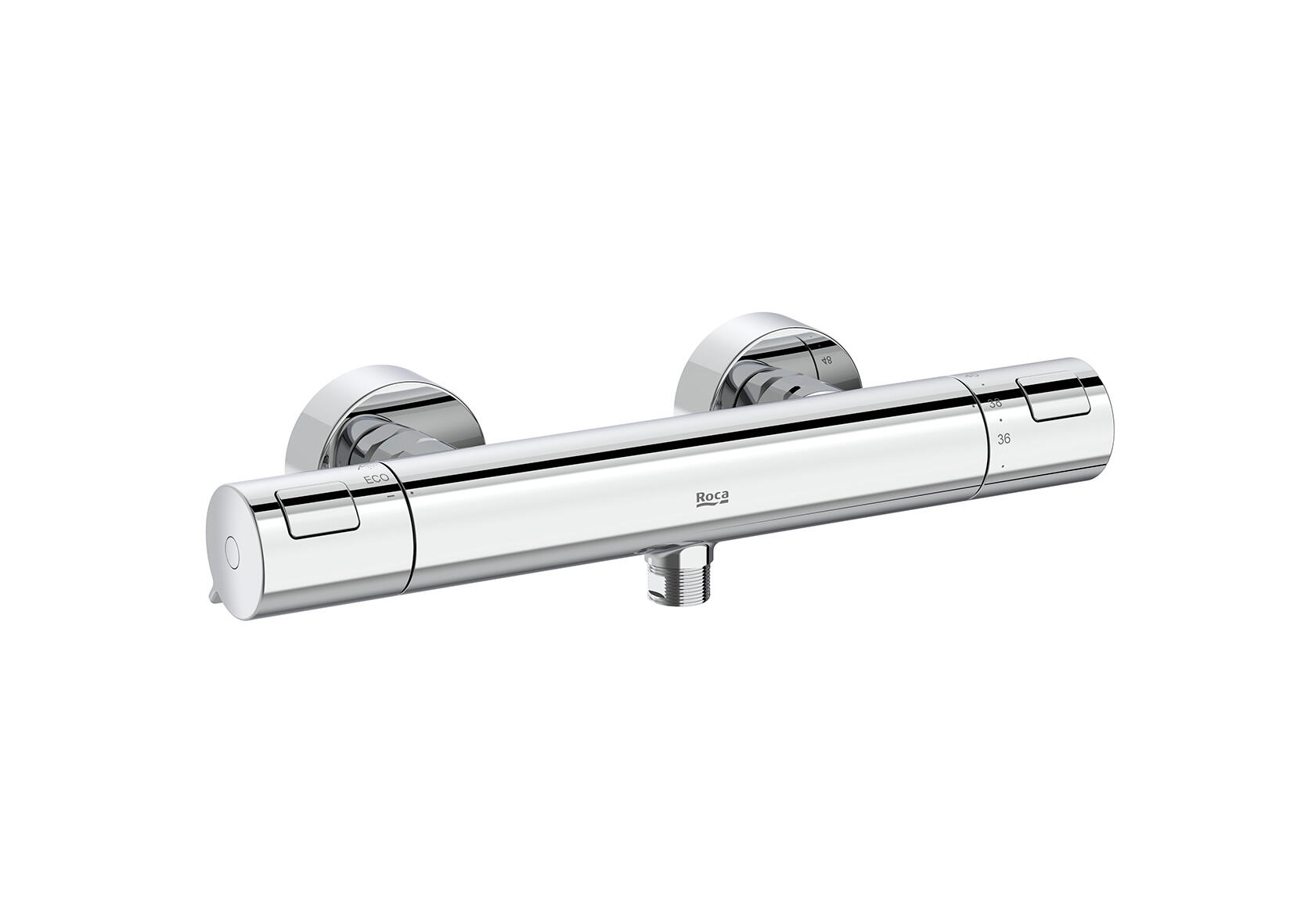 Los grifos termostáticos cuentan con dos mandos: para el control de la temperatura ( bloqueo antiquemaduras en 38º) y para regular el caudal del agua. Son una excelente opción para el ahorro de energía (la caldera tarda menos en calentar el agua), y ahorro de agua porque tarda menos en salir caliente. El cuerpo de grifo siempre permanece frío, evitando posibles quemaduras. Incluye excéntricas.
