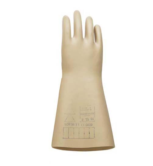 Guante de látex natural para usos eléctricos, tensión de prueba 2500 voltios y de USO 500 voltios. Deben utilizarse con un sobreguante de cuero (212 CE/ML) para proteger el guante de pinchazos. 212 CE/ML. Guante de acero vacuno con costuras externas y estudiado para su ajuste encima de un guante dieléctrico. Protege de agresiones mecánicas sobre el guante. 105CB. Guante interior de Nomex o Kevlar® ligero. Como guante interior, proporciona confort ante el sudor y tiene propiedad ignífuga de resistencia a la llama. Protege de quemaduras por descargas.