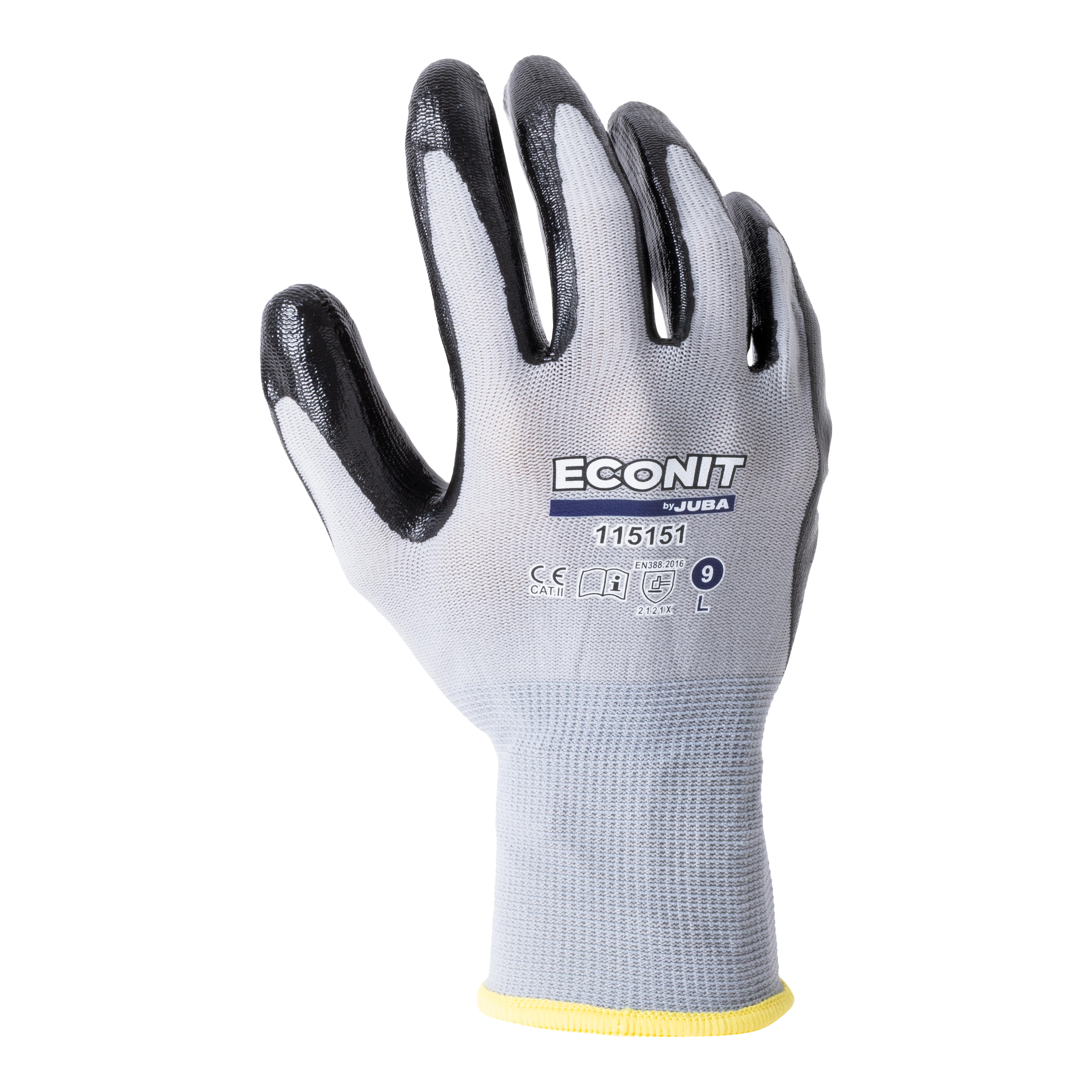 Guante de nylon sin costuras con recubrimiento de Nitrilo en palma. Color: Gris/Negro.Talla 9.