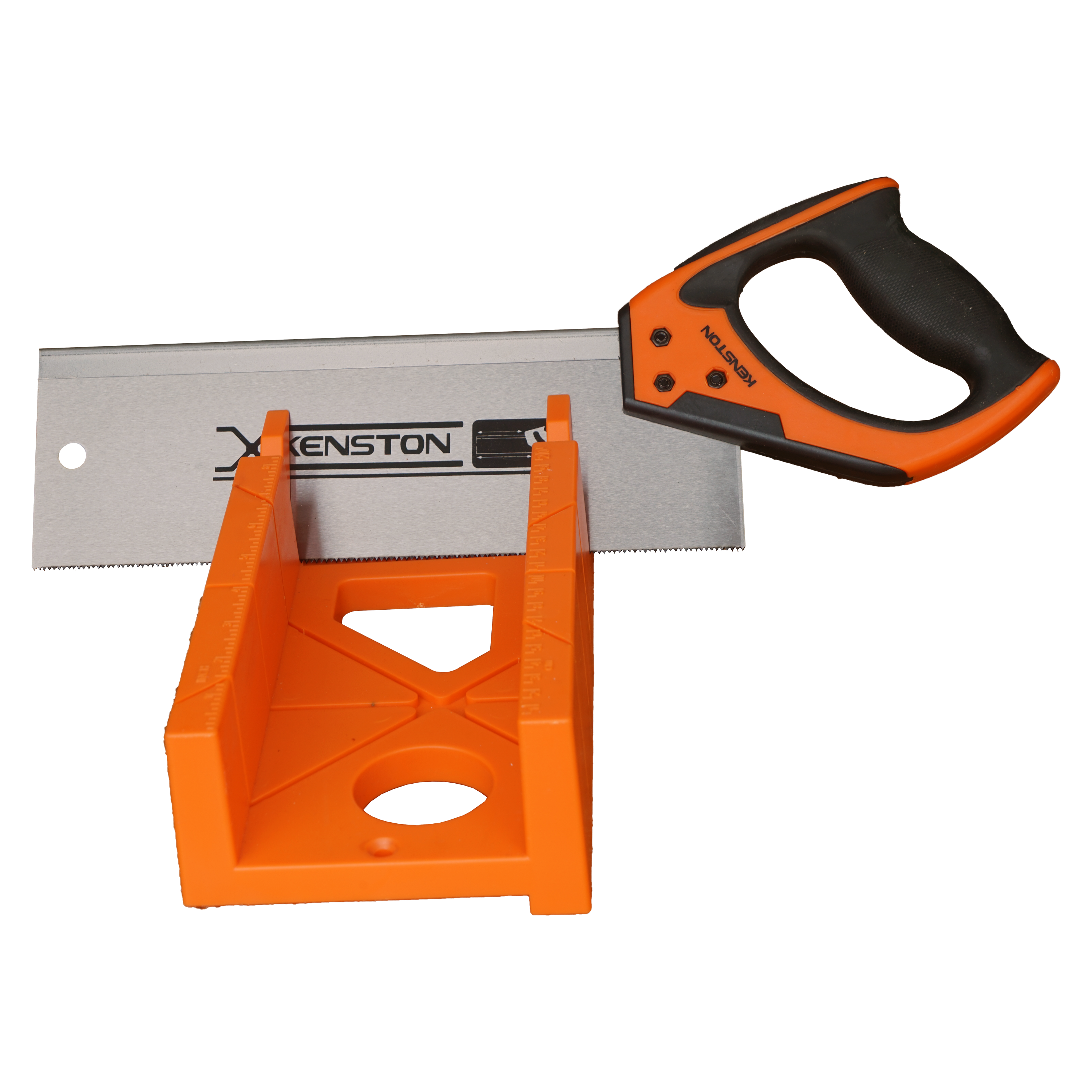 Guía de ingletar de plástico con fijación. 300mm. Altura de corte máximo 110mm. Con serrucho.