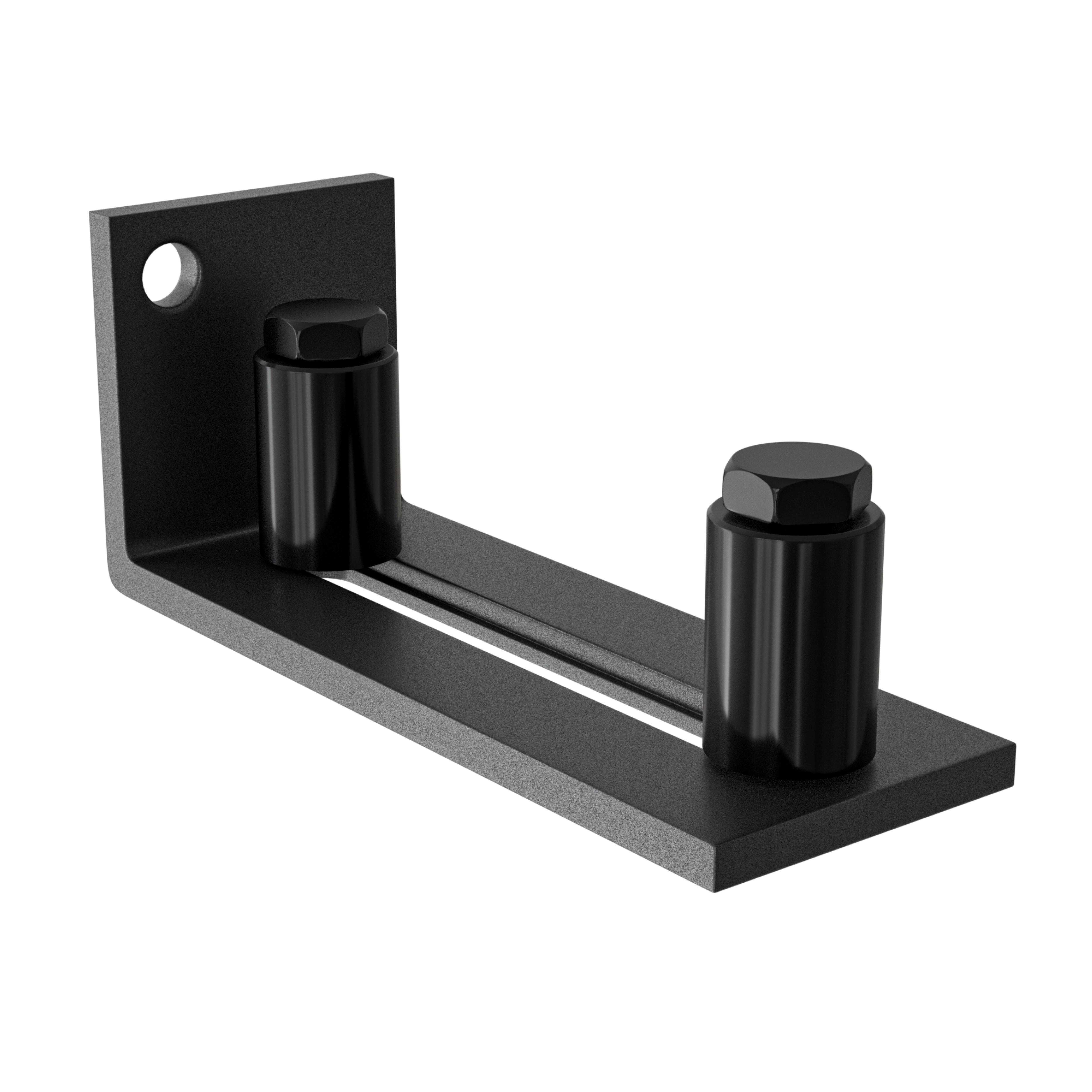 Guía inferior para puertas correderas, fabricado en acero de alta calidad con doble rodillo de nylon de alta resistencia al desgaste y deslizamiento silencioso. Los rodillos guía se ajusta mediante una ranura para adaptarse al espesor de la puerta. Para puertas de espesores hasta 55 mm.