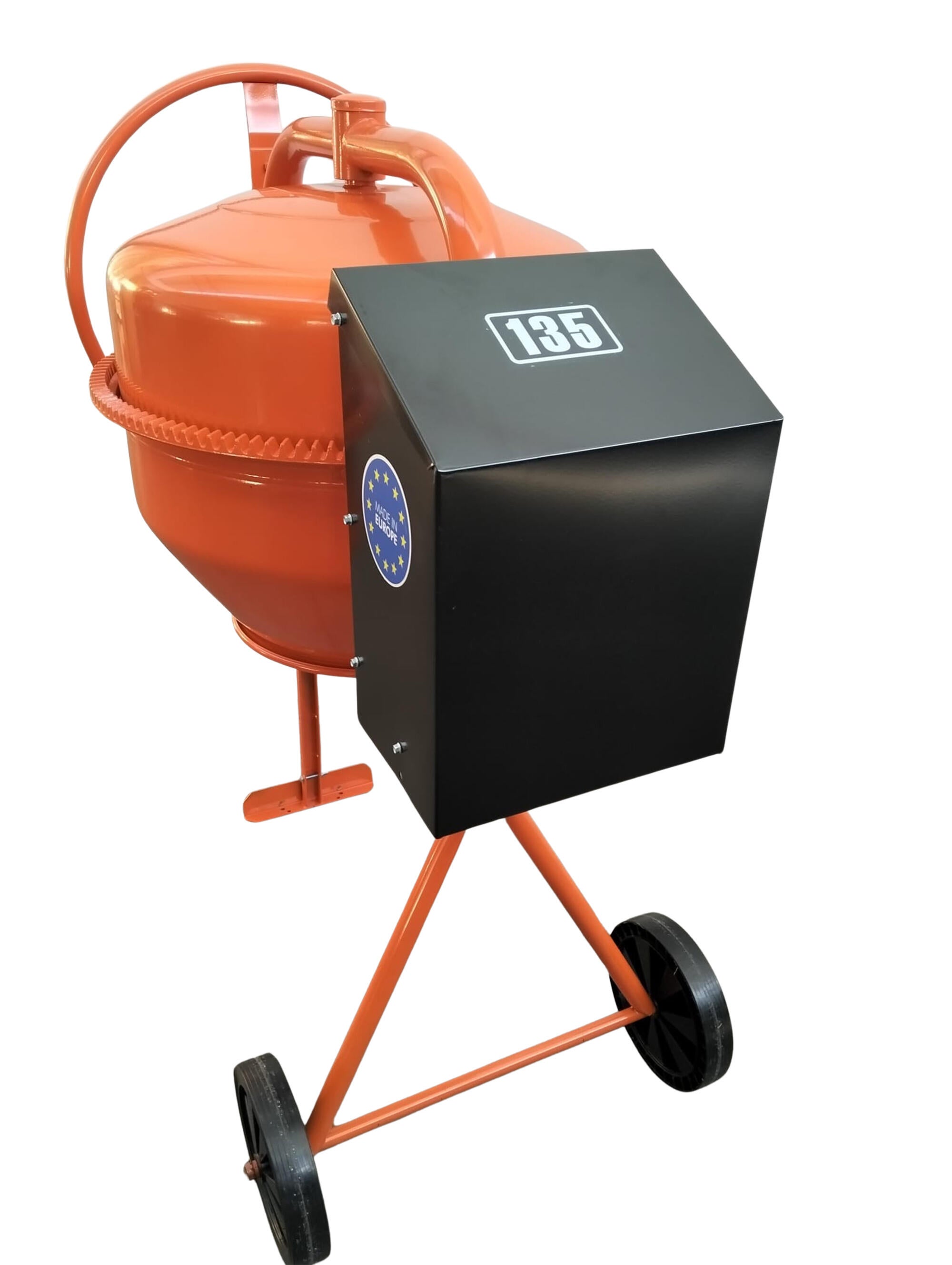 Hormigonera eléctrica 100l 700W con protección IP54 y peso de 49kg, con capacidad de mezcla 100l, modelo Premix 135, con ruedas de goma, estructura reforzada y corona de fundición.