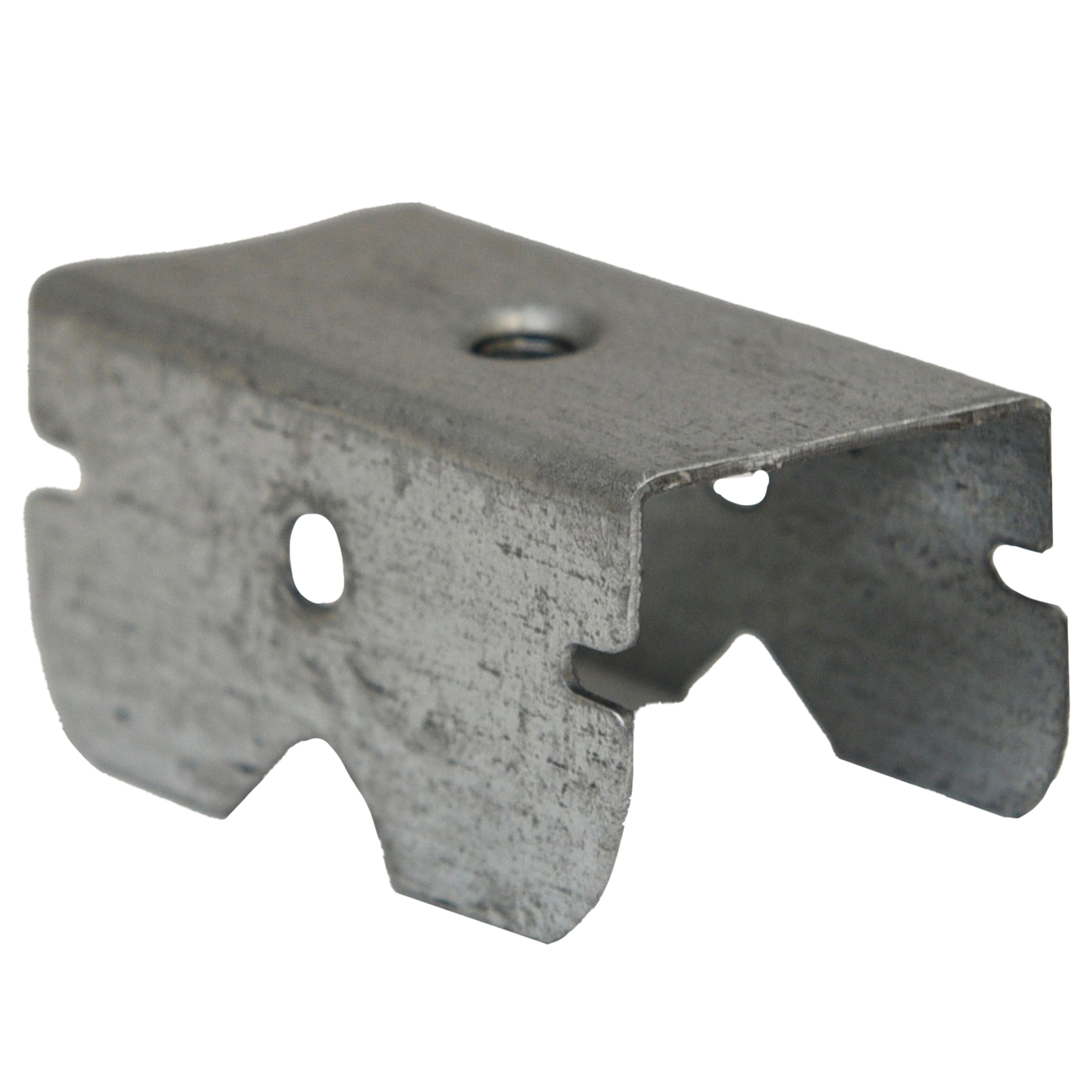 Accesorio metálico de acero galvanizado para la suspensión de techos continuos Se fija al perfil F530 encajando la pieza en el interior de las alas del perfil. Caja de 100 unidades.