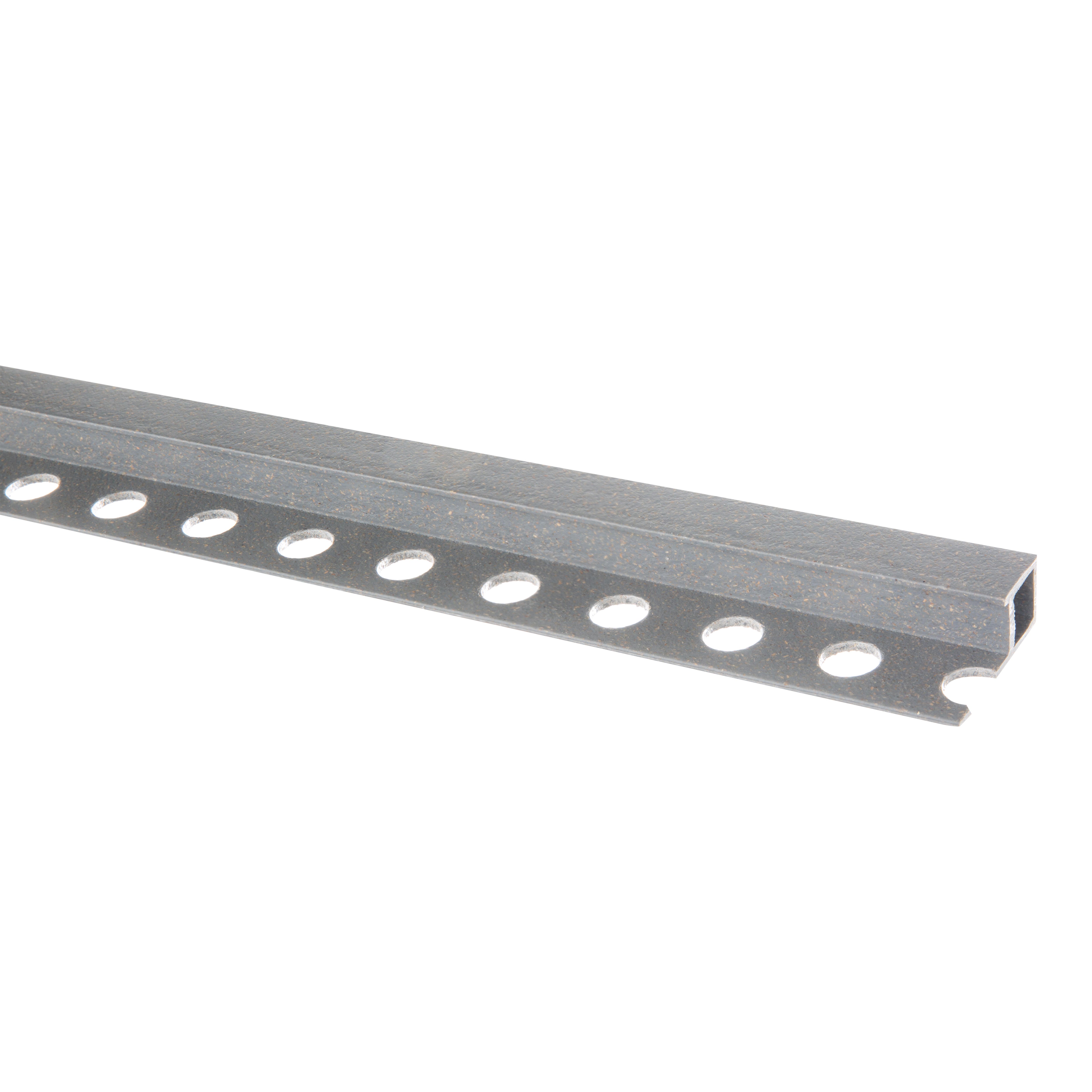 Listelo de PVC de color gris. Sus medidas son 12x13.5x2500mm. Puede ser instalado tanto horizontal como vertical.