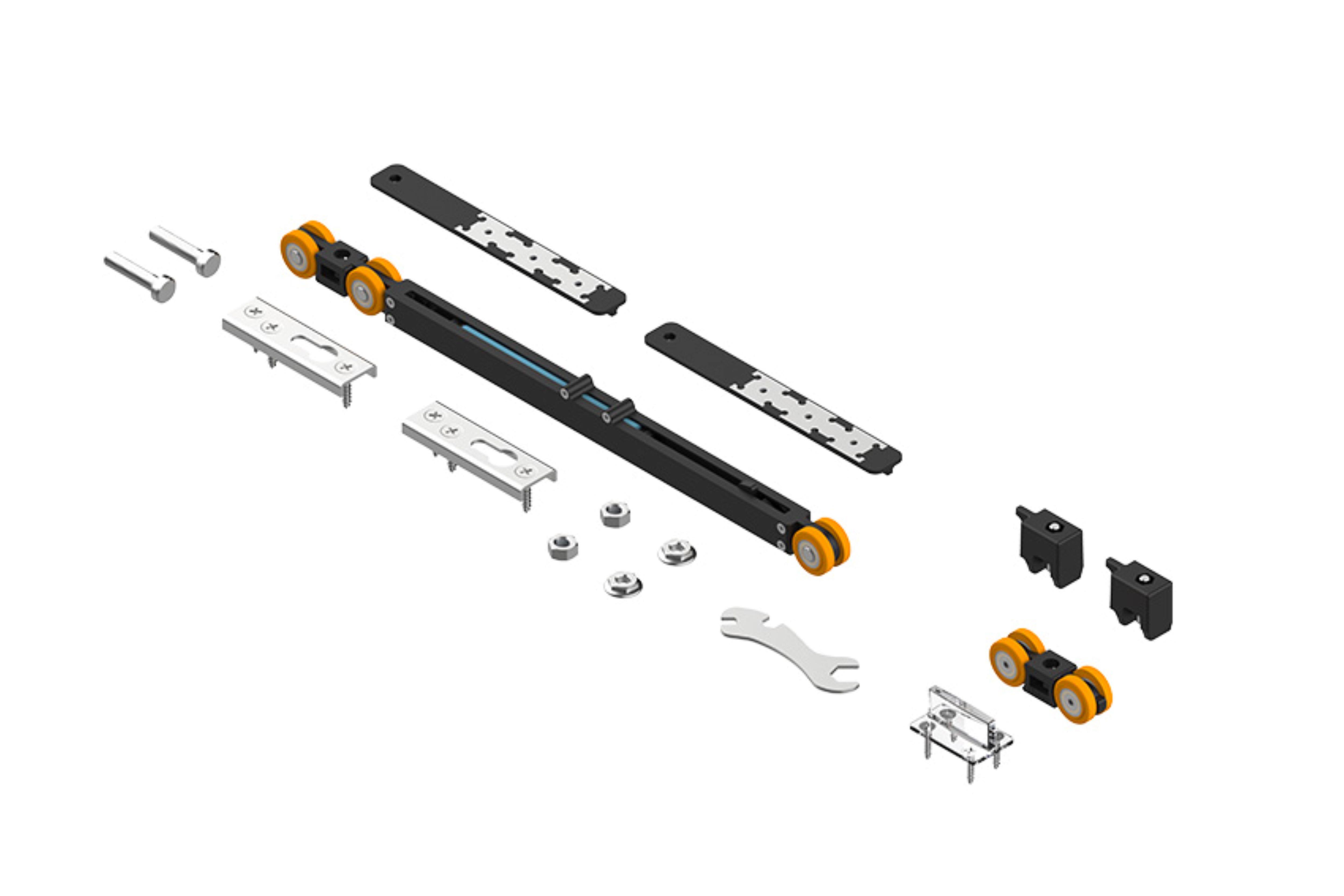 Juego de accesorios o mecanismo SF-P70 pletina encastrada con SofTop doble o freno amortiguado para puerta corredera de interior. Peso máximo 70 kg