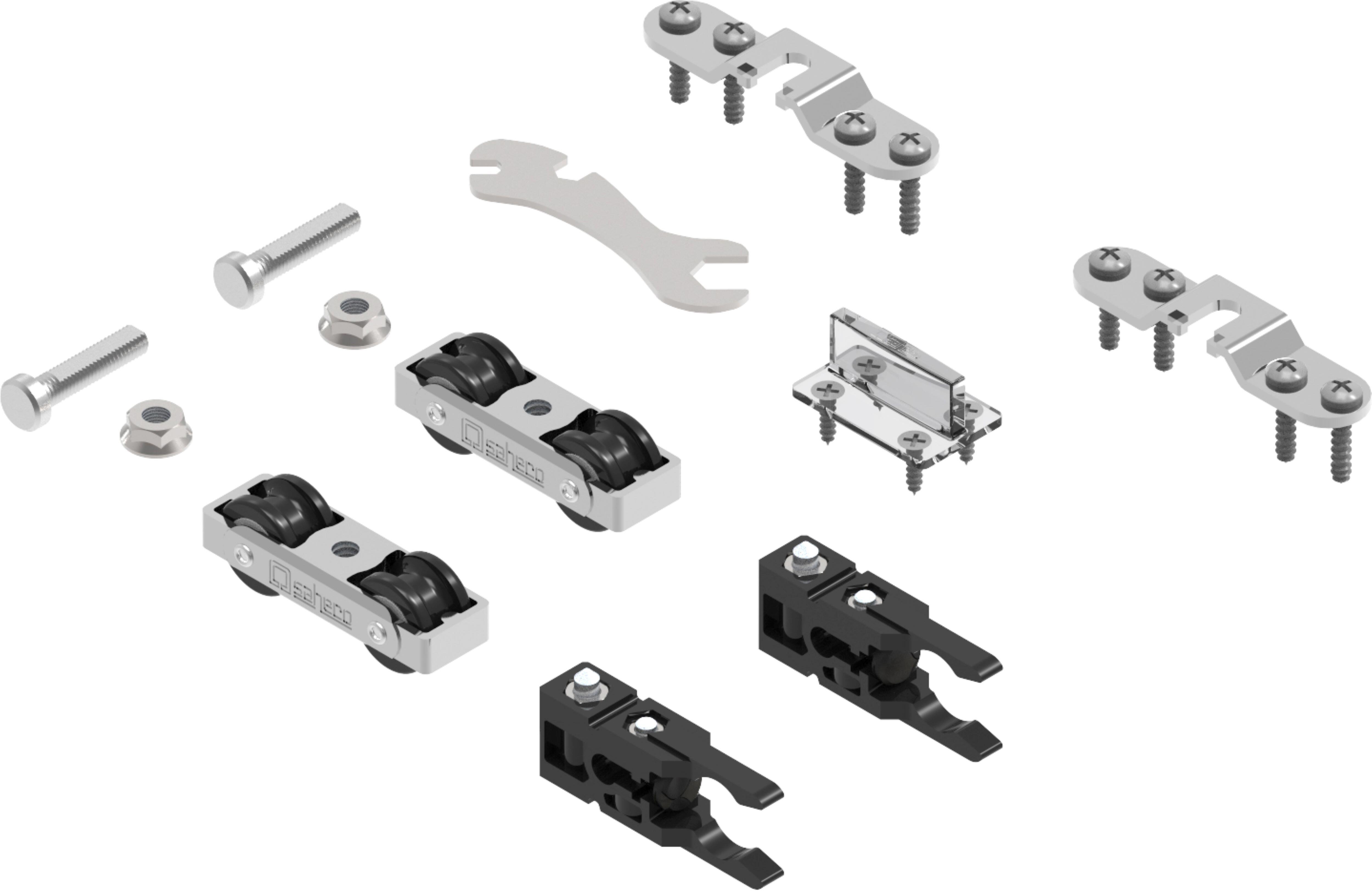 JUEGO ACCESORIOS SF-A90 PUERTA CORREDERA PLETINA SOBREPUESTA CON 2 FRENOS RETENEDORES