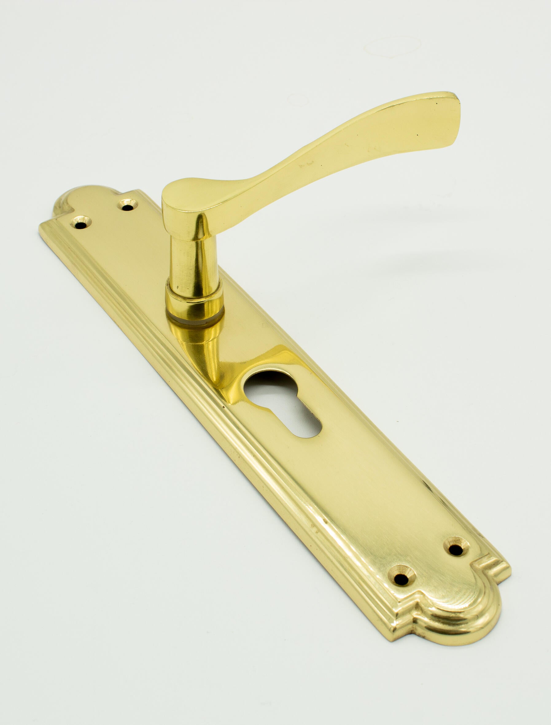Juego de manilla o manivela para puerta interior con bocallave de 47 mm realizada en latón y con acabado latón pulido brillo