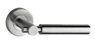 Juego de manillas con roseta para puerta, realizada en acero inoxidable. Diámetro 54 mm. Modelo 10 20