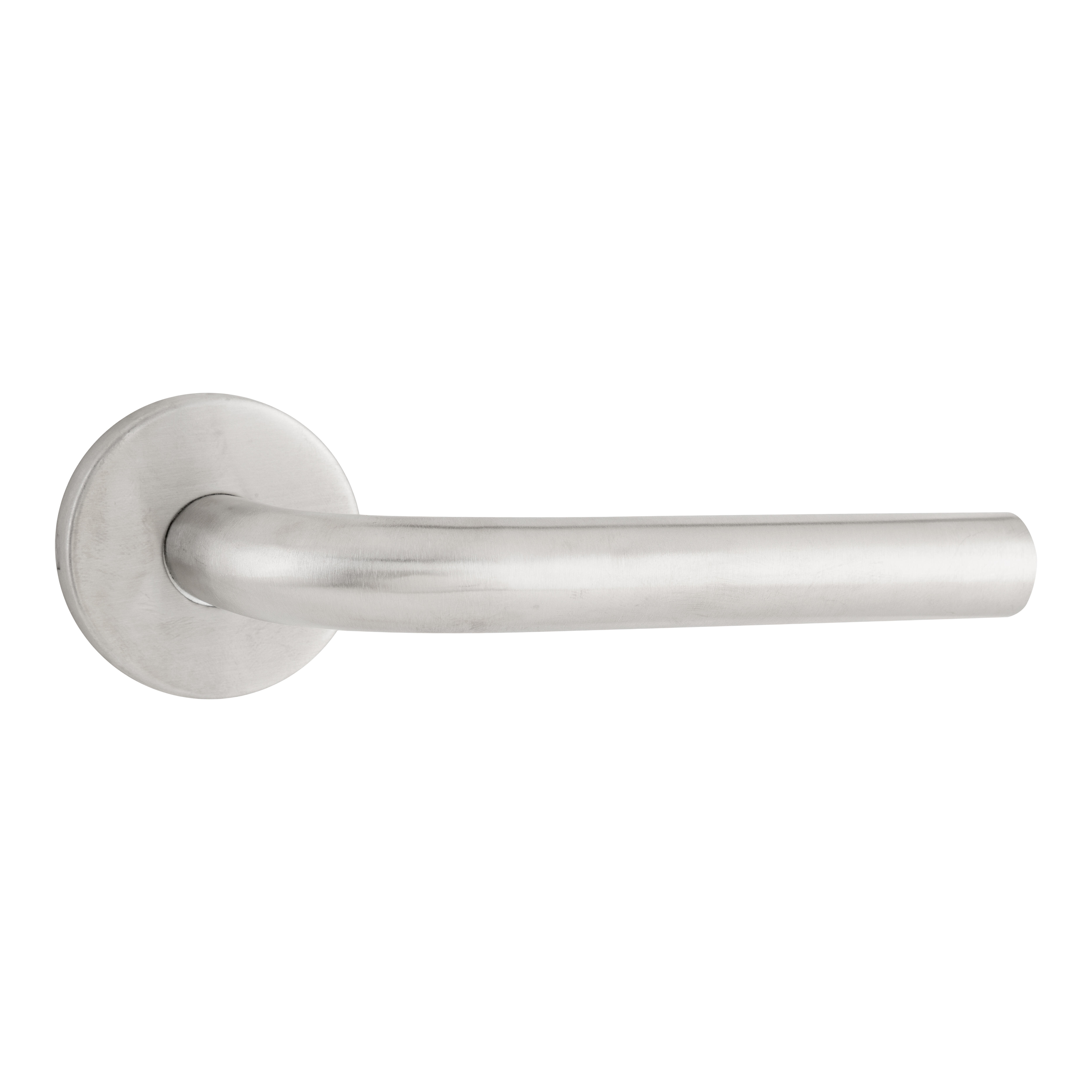 Juego de manivela/manilla con roseta fabricada en acero inoxidable aisi 304 Muelle de recuperación protegido por un cartucho de aluminio. Roseta interior fabricada en acero al carbono Roseta exterior fabricada en acero inoxidable aisi 304 Acabado acero inoxidable AISI304
