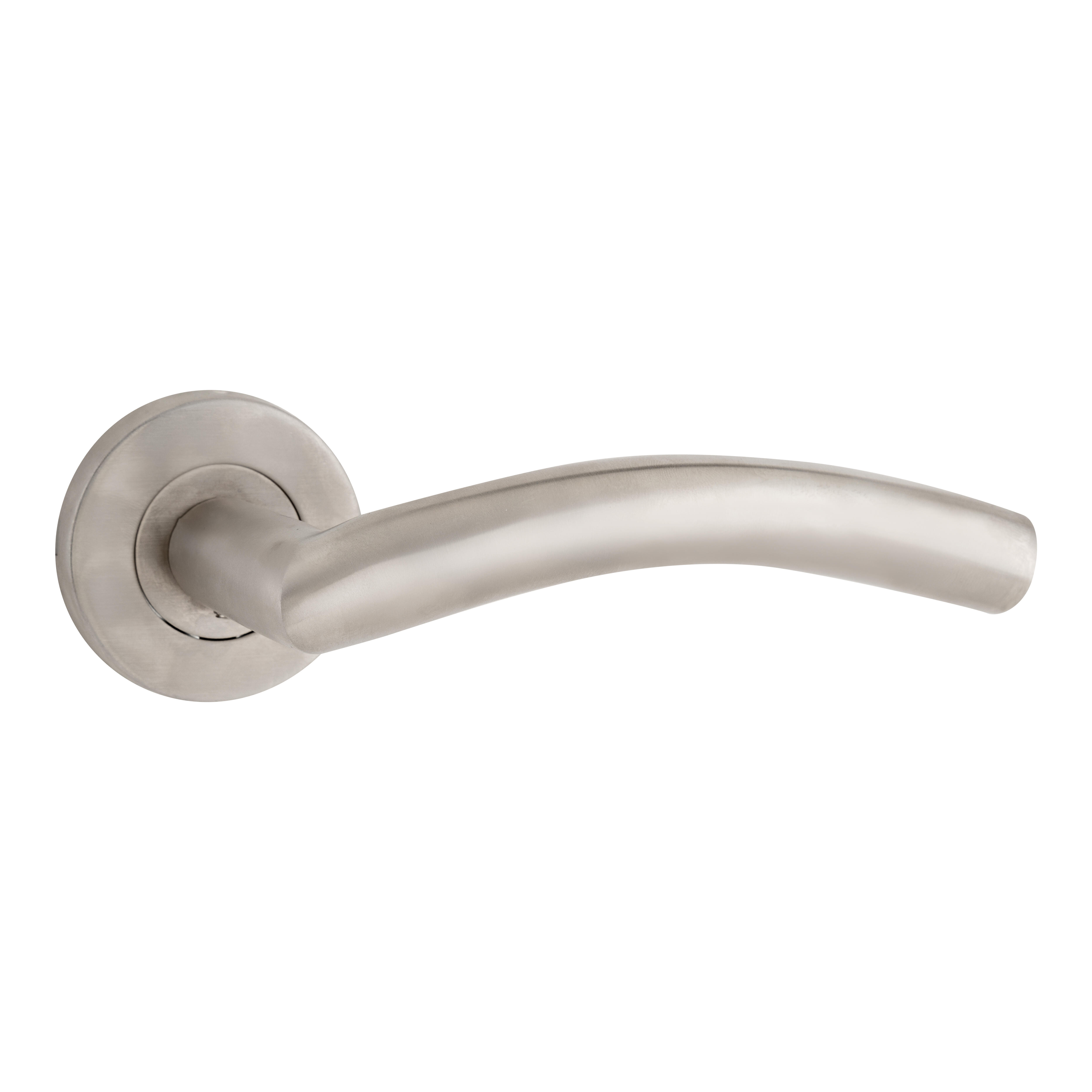 Juego de manillas con roseta para puerta realizadas en acero inoxidable AISI 304 con un diámetro de 54 mm