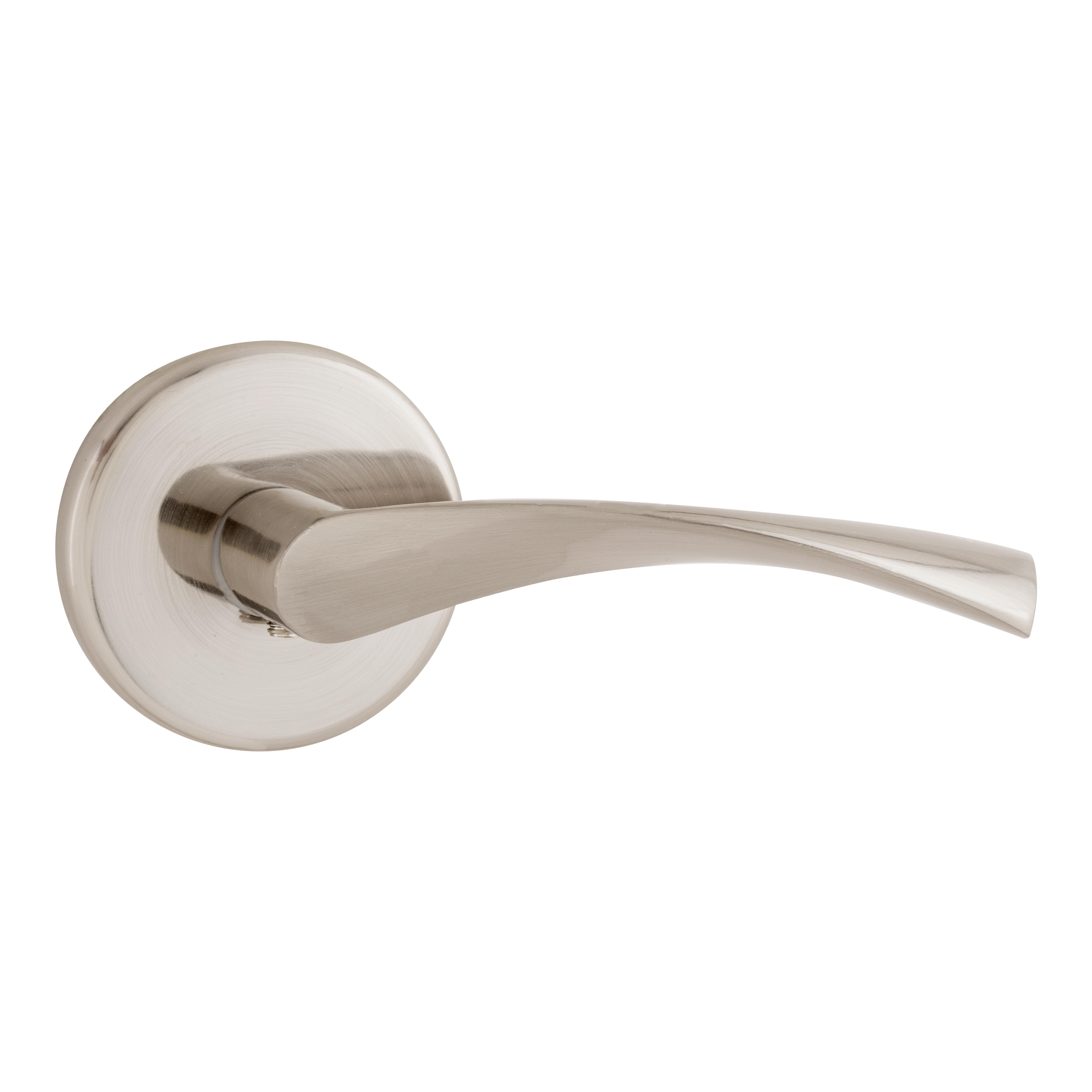 Juego de manilla con roseta para puerta, realizada en aluminio con acabado níquel satinado de 65 mm de diámetro, ideales para sustitución de pomo