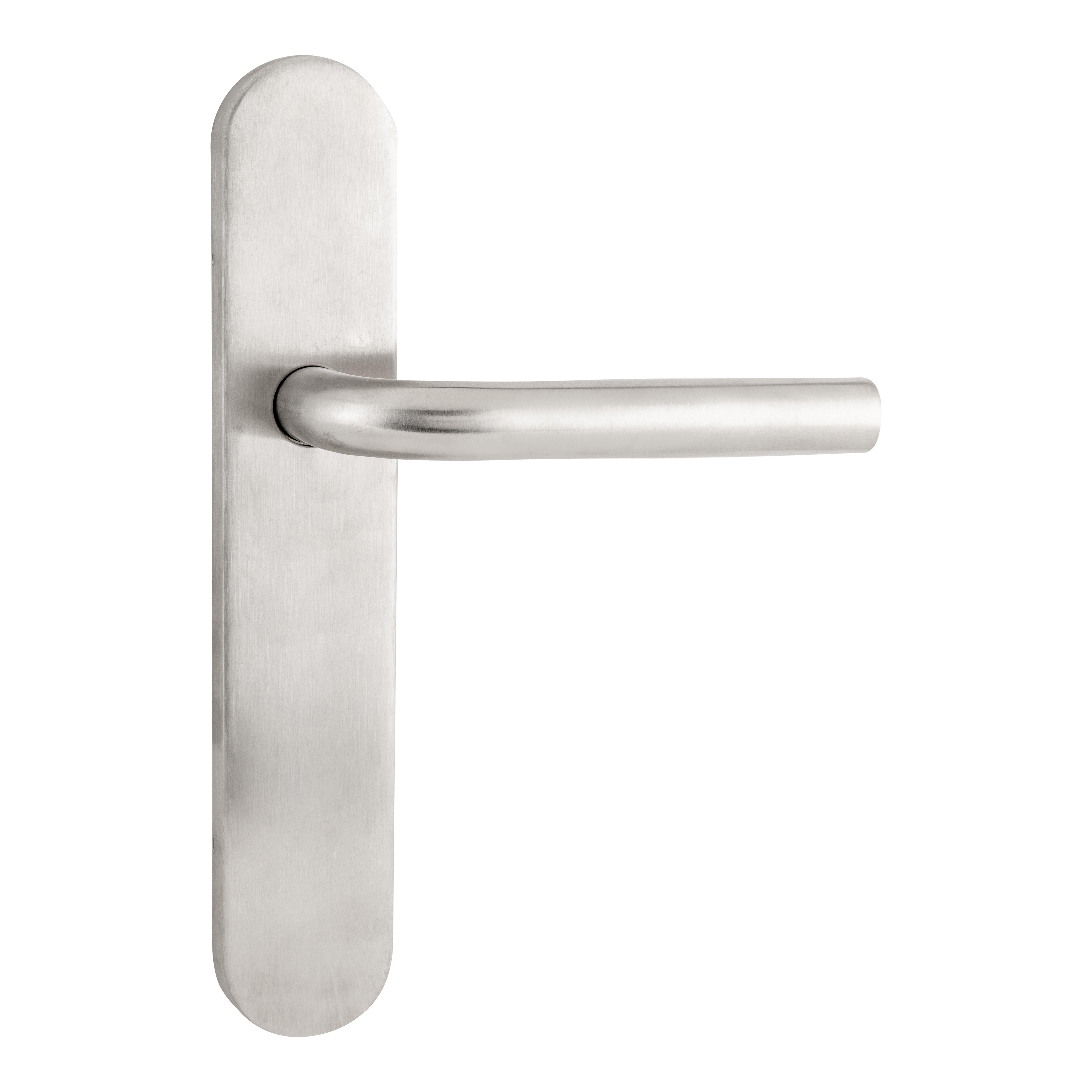 Juego de manilla para puerta de interior con placa ciega realizada en acero inoxidable AISI 304
