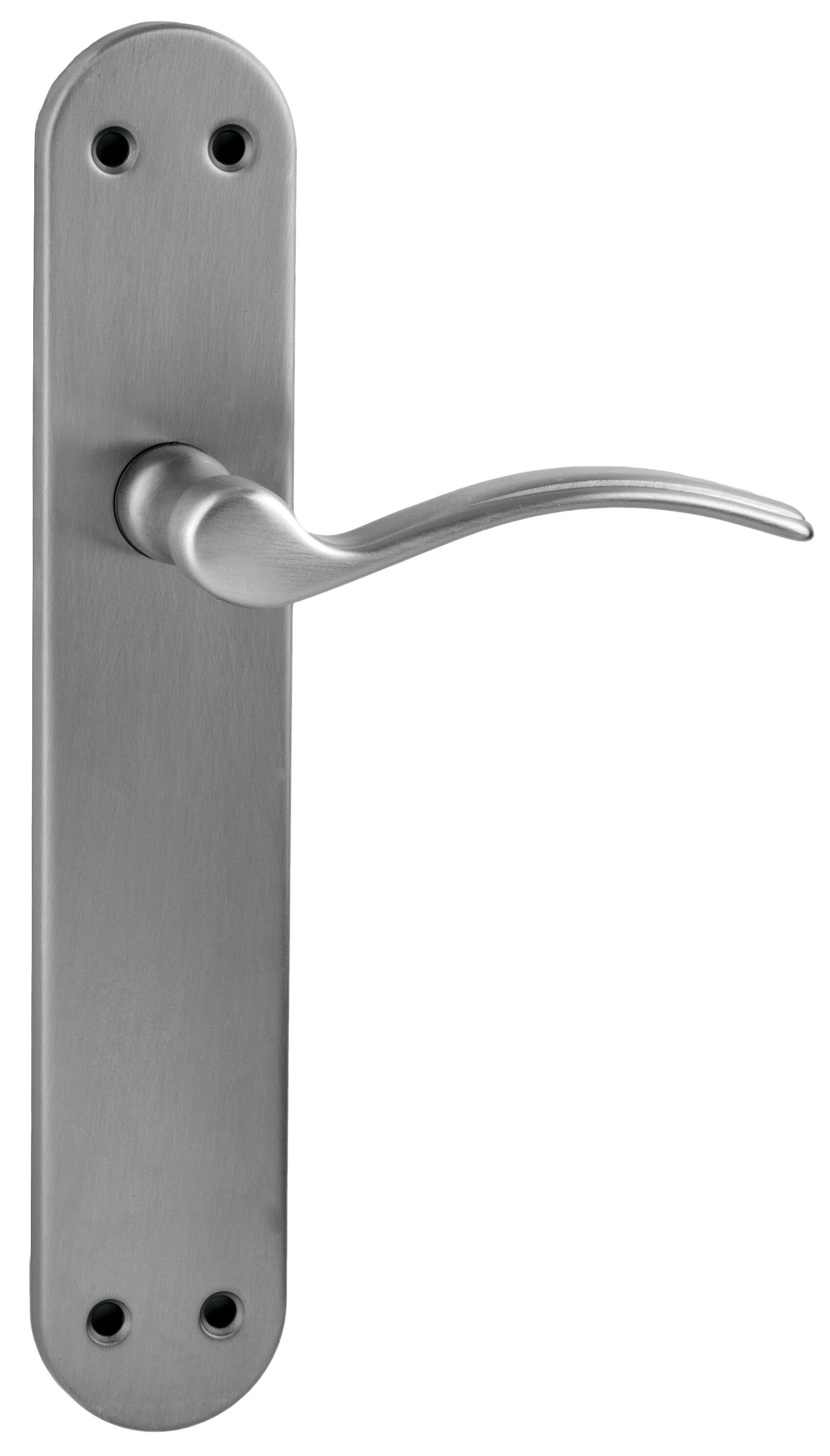 Juego de manillas para puerta interior con placa lisa o ciega, realizadas en aluminio con acabado níquel satinado. Mod LISA