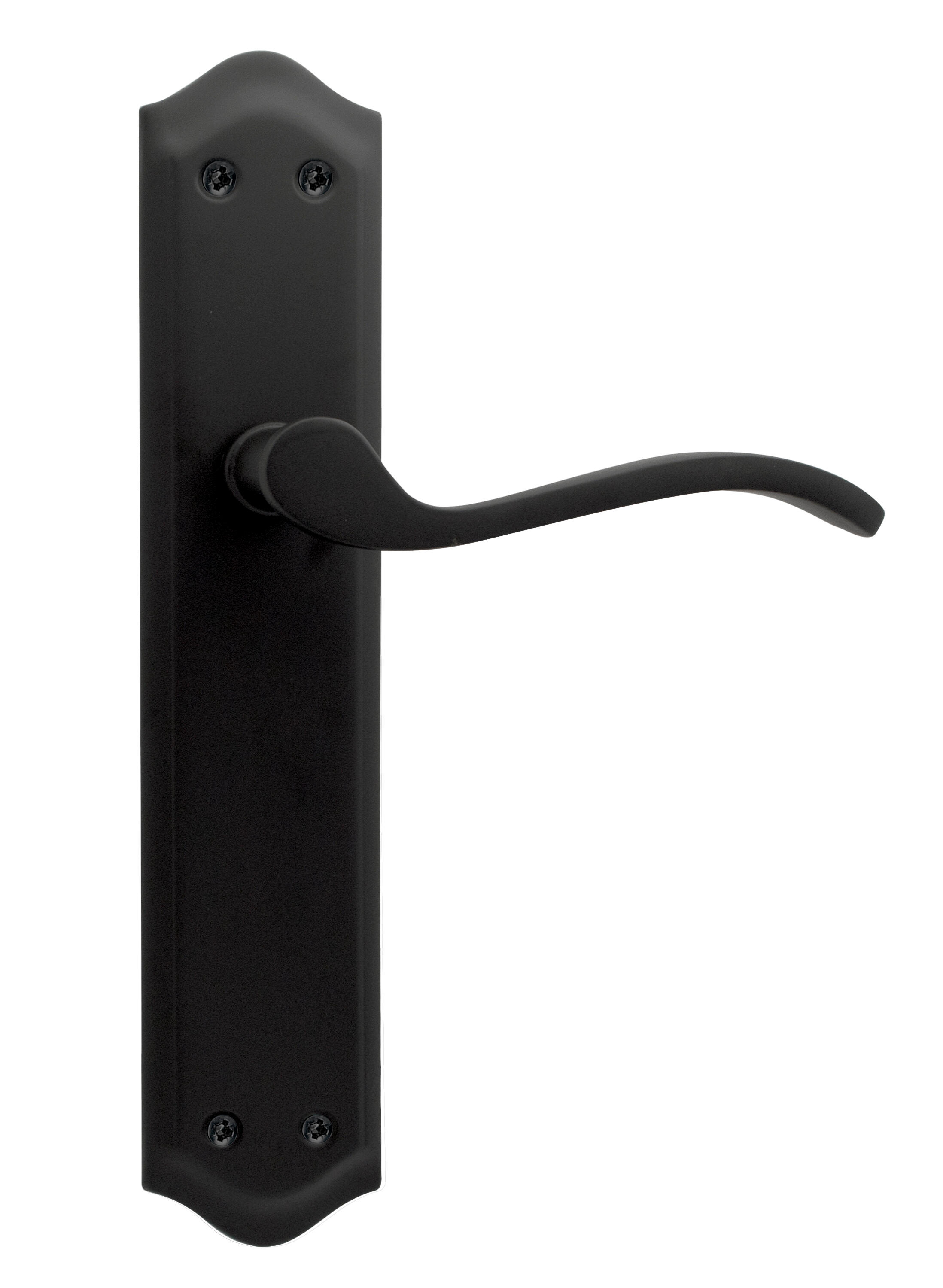 Juego de manillas Oryol realizado en hierro y acabado pintado negro. Placa lisa