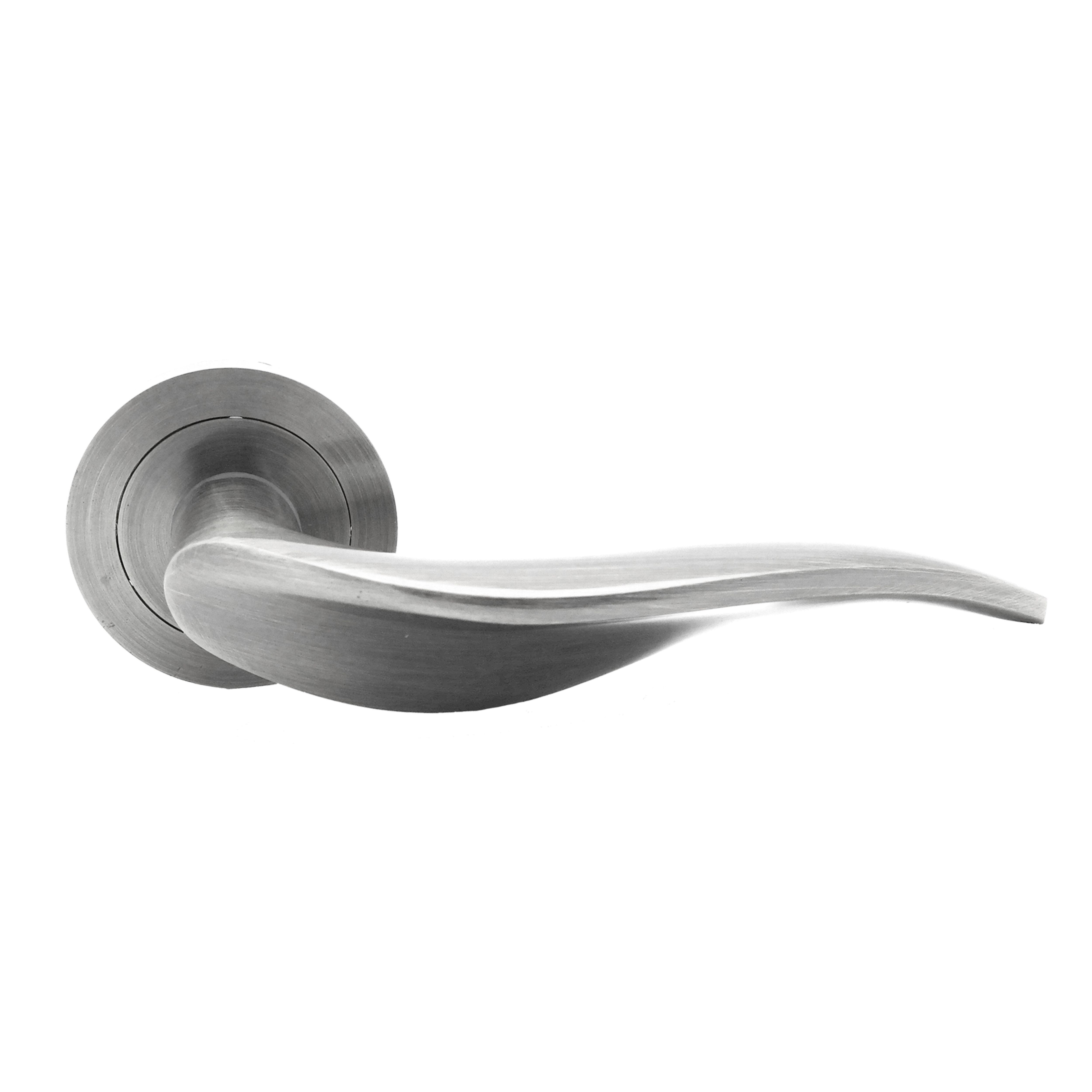 juego de roseta realizada en aluminio y acabado níquel satinado modelo 494. Ideal para puertas de paso de casa o local. Diámetro de la roseta 50 mm. Medida de la maneta 120 mm. Realizada en aluminio y acabado níquel satinado.