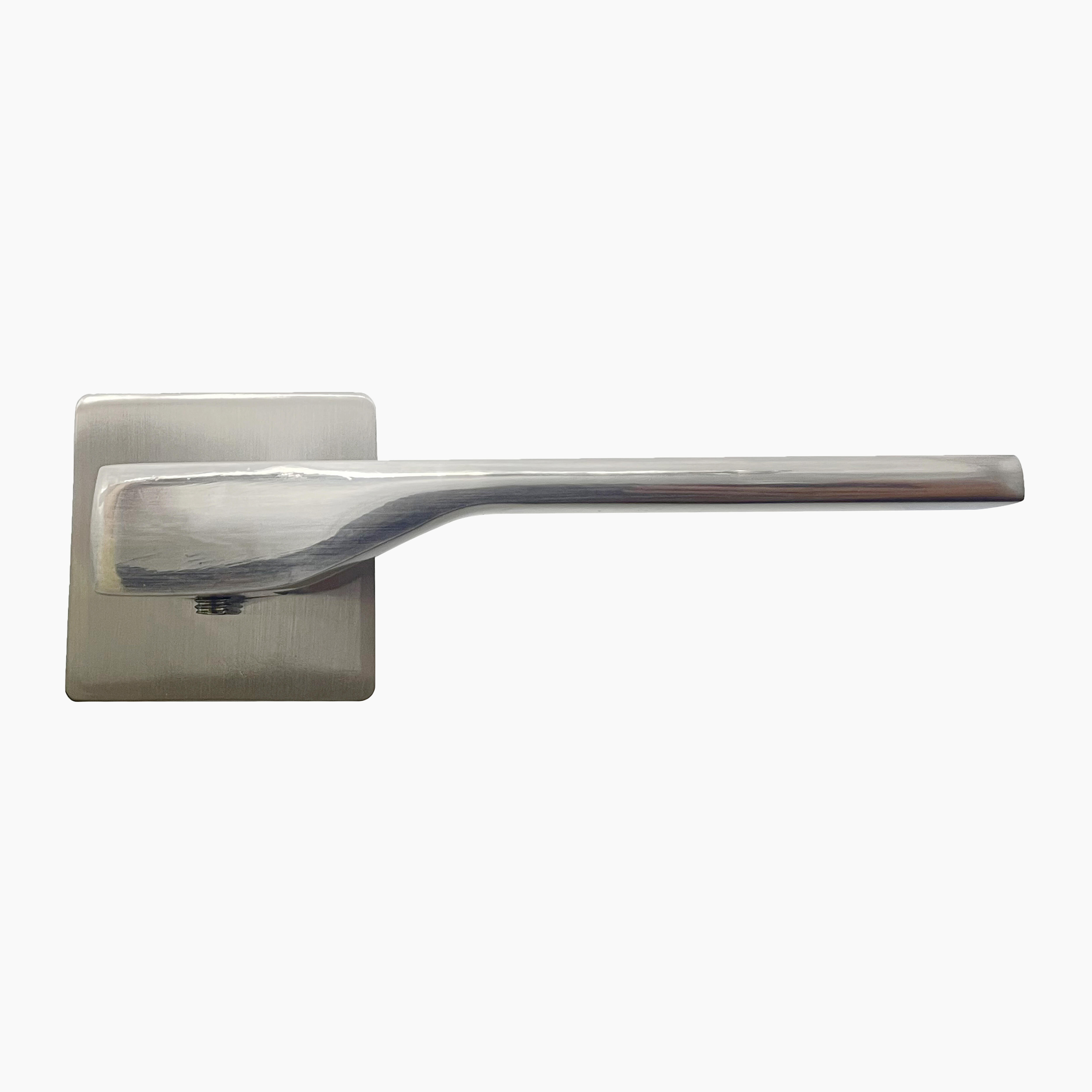 Manivela de roseta fabricada en aluminio cuadrada. Muelle de recuperación protegido por un cartucho de zamak. Acabado níquel