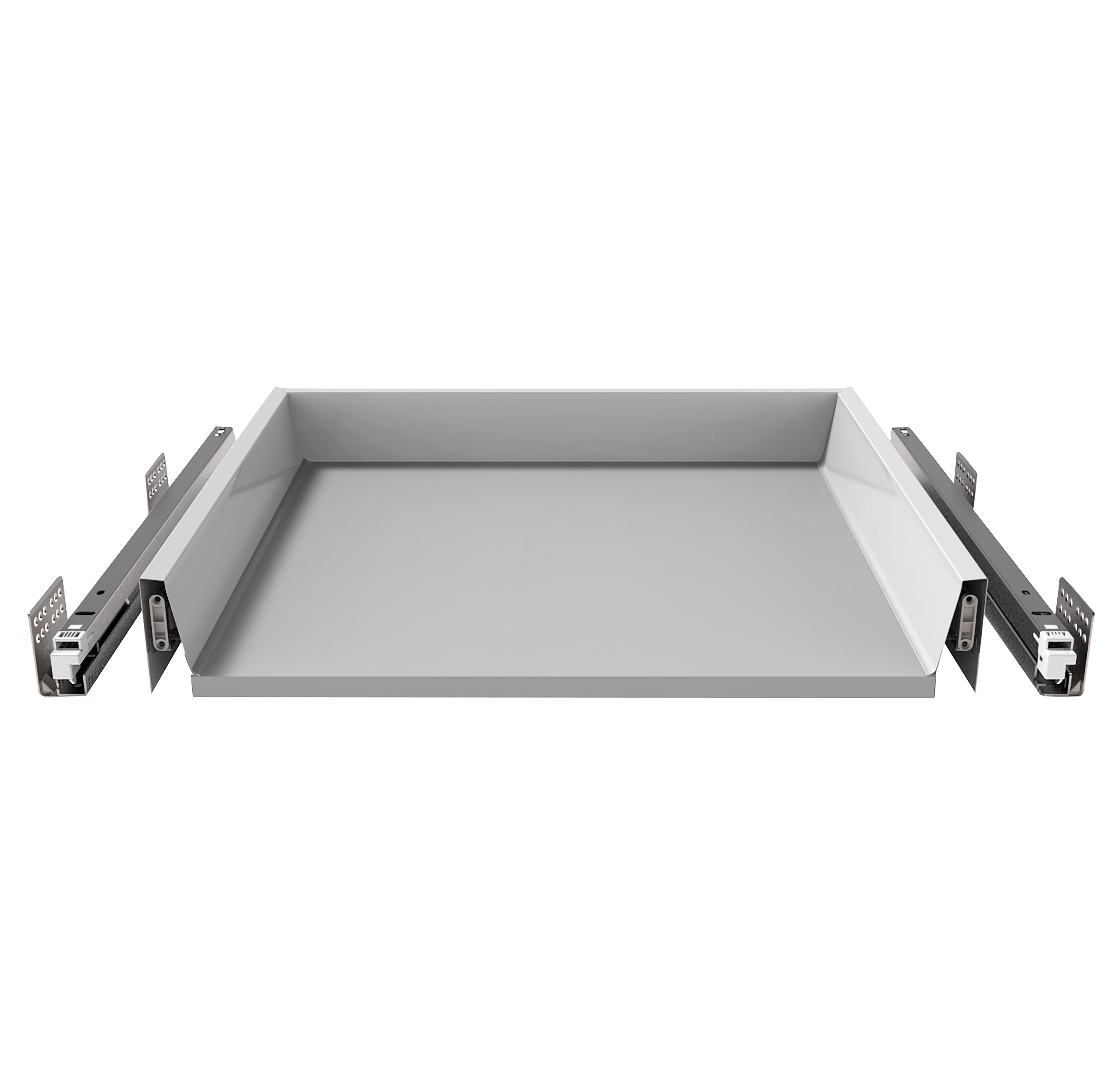 Cajón metálico de doble pared con un completo programa de correderas de hasta 50 kg y sistema de autocierre con amortiguación INDAmatic. Está dotado de una corredera telescópica que permite la extracción total del cajón, consiguiendo con ello aprovechar al máximo el interior. Es ideal para configurar grandes cajones ya que soporta pesos de hasta 50kg.