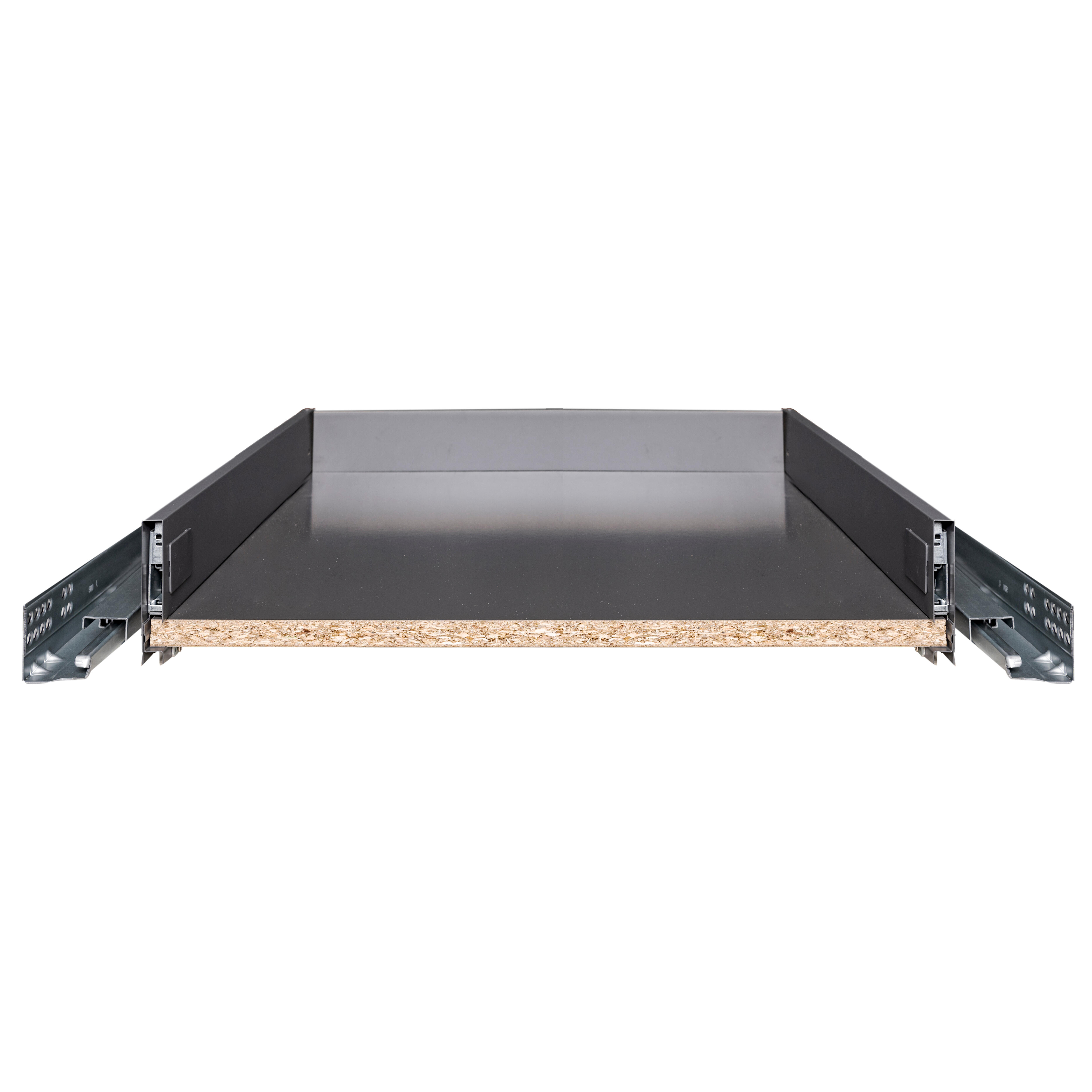 Cajón metálico de doble pared con un completo programa de correderas de hasta 50 kg y sistema de autocierre con amortiguación INDAmatic. Está dotado de una corredera telescópica que permite la extracción total del cajón, consiguiendo con ello aprovechar al máximo el interior. Es ideal para configurar grandes cajones ya que soporta pesos de hasta 50kg.