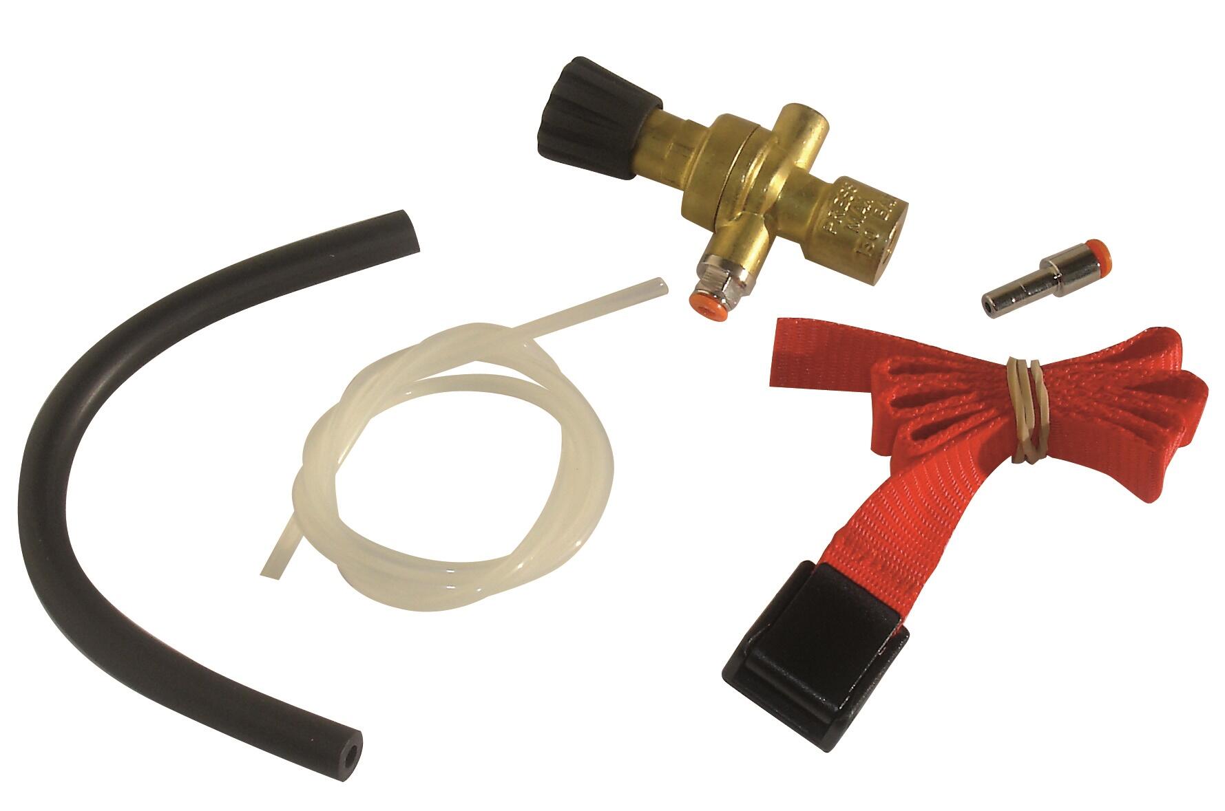 Kit de enlace para bombona. Incluye: 1 Regulador de gas, 2 mangueras de conexión y una pieza de enlace. Longitud del tubo 0.67m.