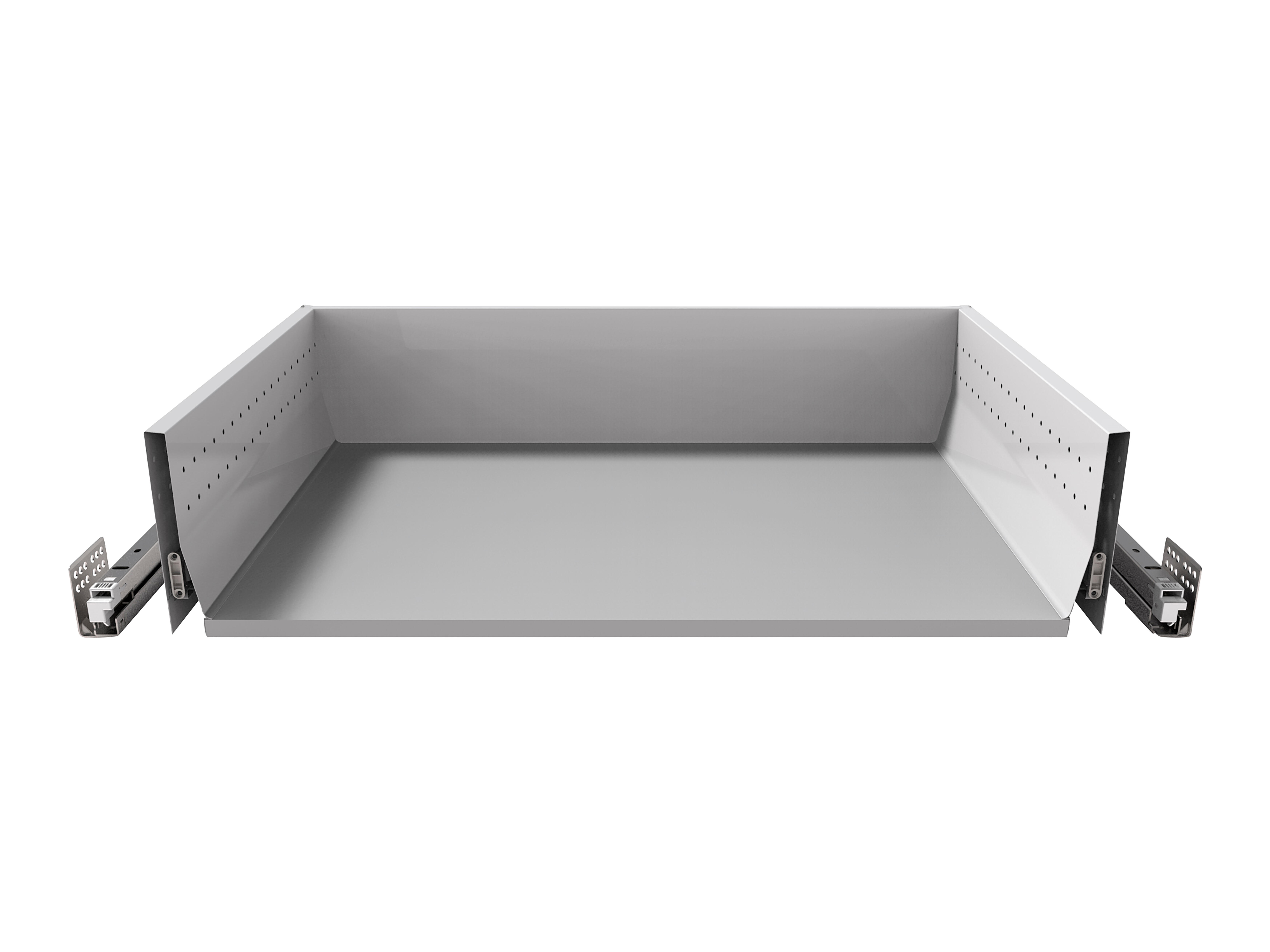 Cajón metálico de doble pared con un completo programa de correderas de hasta 50 kg y sistema de autocierre con amortiguación INDAmatic. Está dotado de una corredera telescópica que permite la extracción total del cajón, consiguiendo con ello aprovechar al máximo el interior. Es ideal para configurar grandes cajones ya que soporta pesos de hasta 50kg.