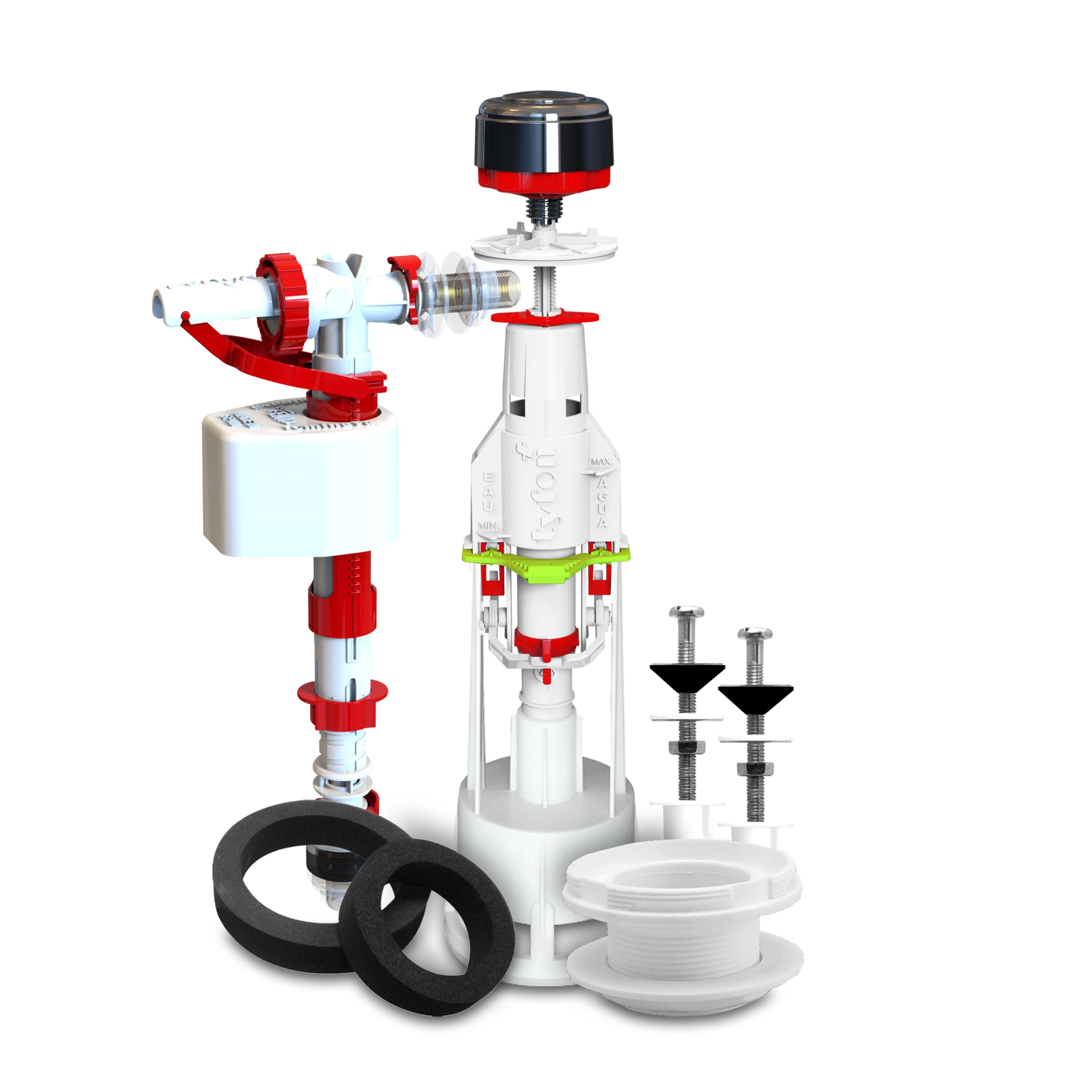 Mecanismo cisterna completo •Descargador de agua de cisterna. •Mecanismo completo. •Contiene también el mecanismo de fijación. •Artículo también conocido como recambio cisterna universal.
