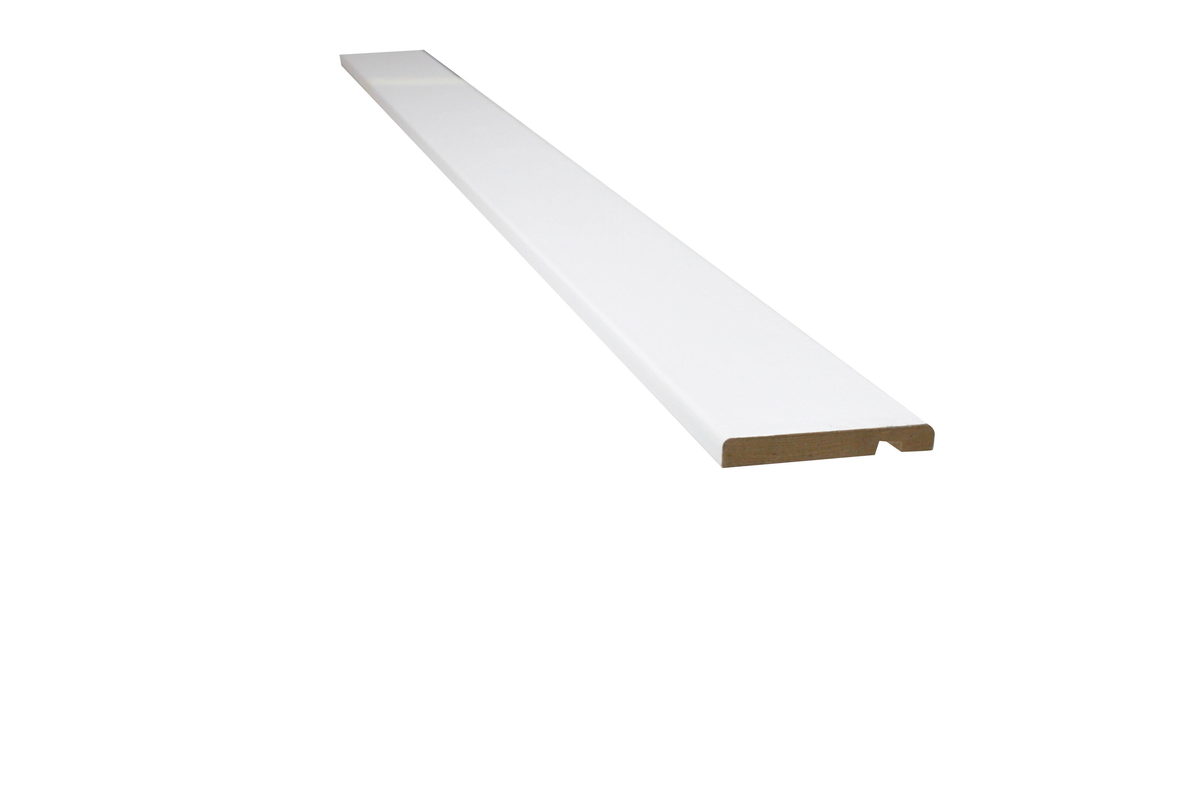 Moldura de melamina blanca. Medidas: 220 x 7 x 1 cm. Se vende en paquete de 5 molduras.