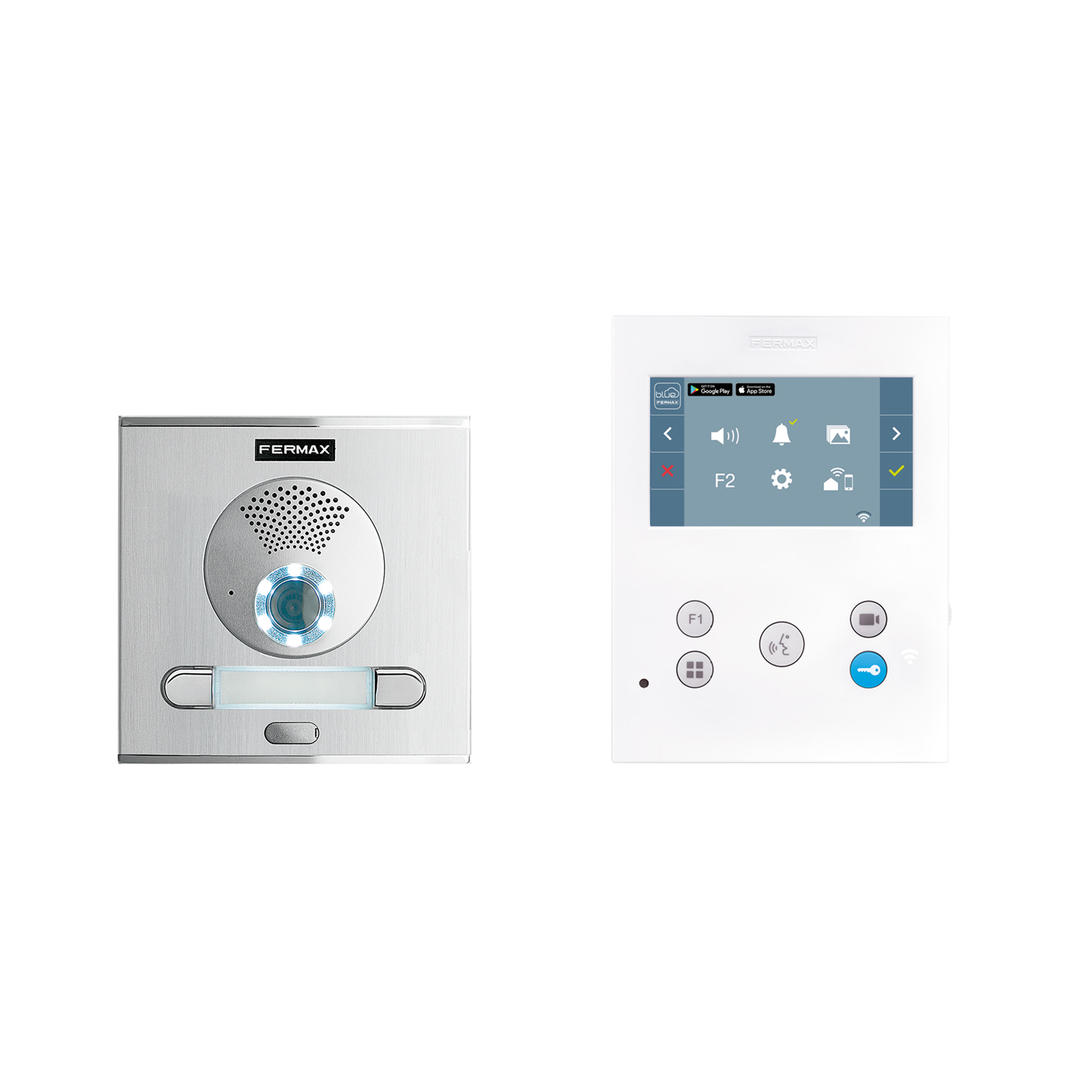 Funcionan con DUOX PLUS, un sistema de portero y videoportero completamente digital y tecnología sobre dos hilos no polarizados, lo que simplifica su instalación manteniendo la máxima calidad en el producto y el diseño. Incluyen de serie el monitor VEO-XL WIFI DUOX PLUS, equipado con conexión Wi-Fi que permite el desvío de llamadas a dispositivos móviles. Gracias a la aplicación BLUE de Fermax, disponible de forma gratuita en Play Store y App Store, las funciones del videoportero se pueden gestionar directamente desde un móvil o tablet.