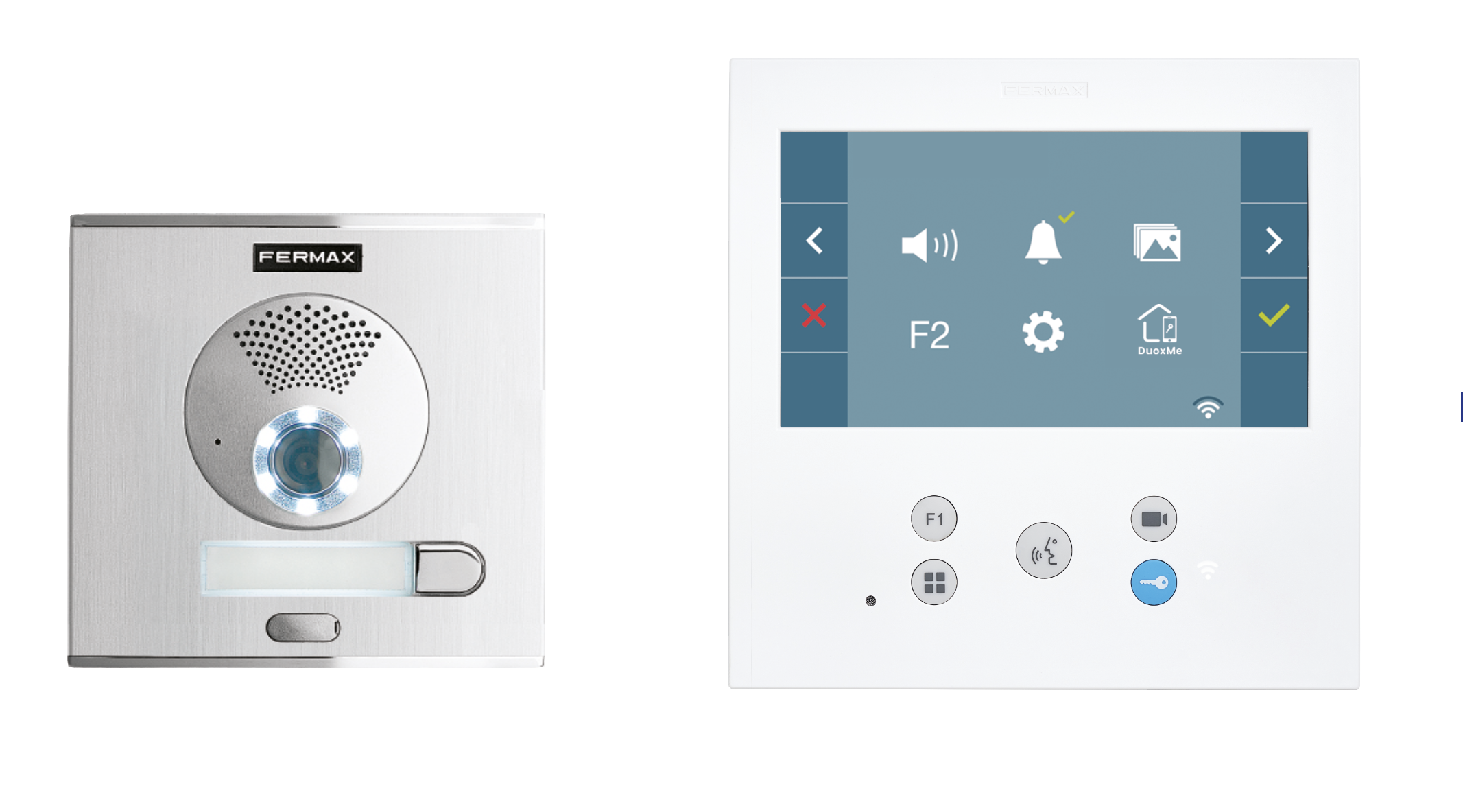 Funcionan con DUOX PLUS, un sistema de portero y videoportero completamente digital y tecnología sobre dos hilos no polarizados, lo que simplifica su instalación manteniendo la máxima calidad en el producto y el diseño. Incluyen de serie el monitor VEO-XL WIFI DUOX PLUS, equipado con conexión Wi-Fi que permite el desvío de llamadas a dispositivos móviles. Gracias a la aplicación BLUE de Fermax, disponible de forma gratuita en Play Store y App Store, las funciones del videoportero se pueden gestionar directamente desde un móvil o tablet.