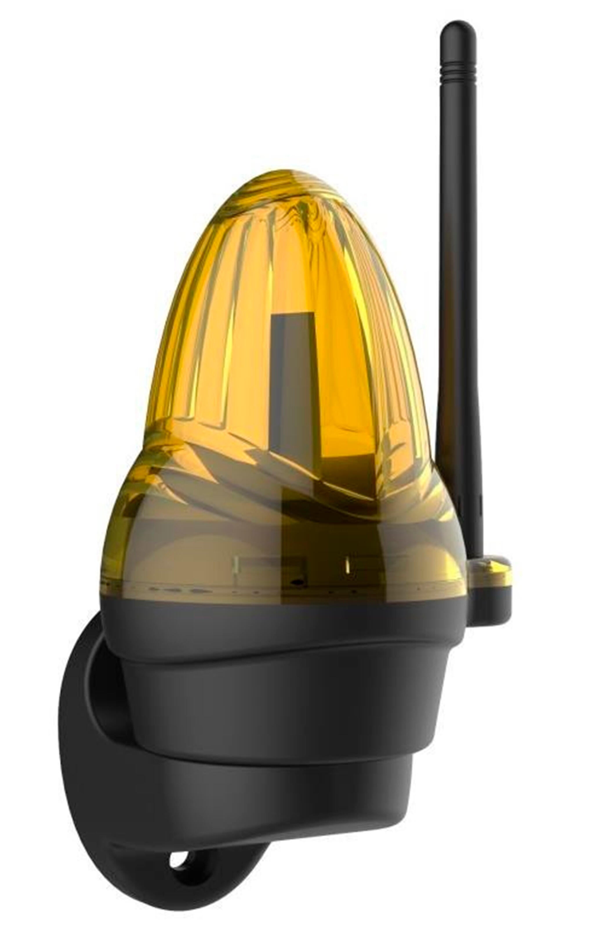 Lampara de señalizacion multitension con led, para indicar el movimiento de una puerta automatica. compatible con cualquier Motor que disponga de salida para lampara. seleccion luz fija o luz intermitente mediante microinterruptor. antena incorporada 433.92 mhz para conectarla a cuadros que dispongan de esa salida para ampliar el alcance de un mando.