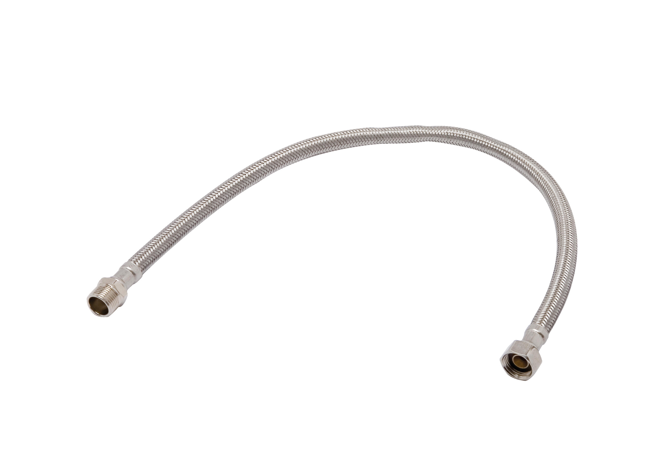 Tubo flexible tradicional con tubo interno en EPDM para conectar la red de abastecimiento de agua con los grifos individuales y los mezcladores instalados en lavabos, bidés, fregaderos de cocina, cisternas de inodoros. Capaz de garantizar un caudal de agua de 32 litros/min. a una presión de 3 bar; Equipado con acoplamientos de latón, conectores y trenza de acero Inox. CARACTERISTICAS Conexión flexible de ø8 mm de diámetro interior. Con una longitud de 50cm. Conexión Macho-Hembra de 1/2". Temperatura de funcionamiento Desde -5ºC hasta 70ºC.